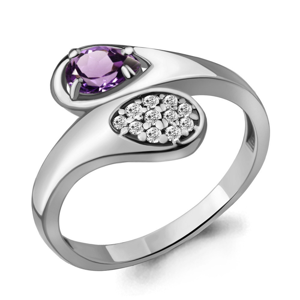 Aquamarine Кольцо из серебра с фианитами и аметистом