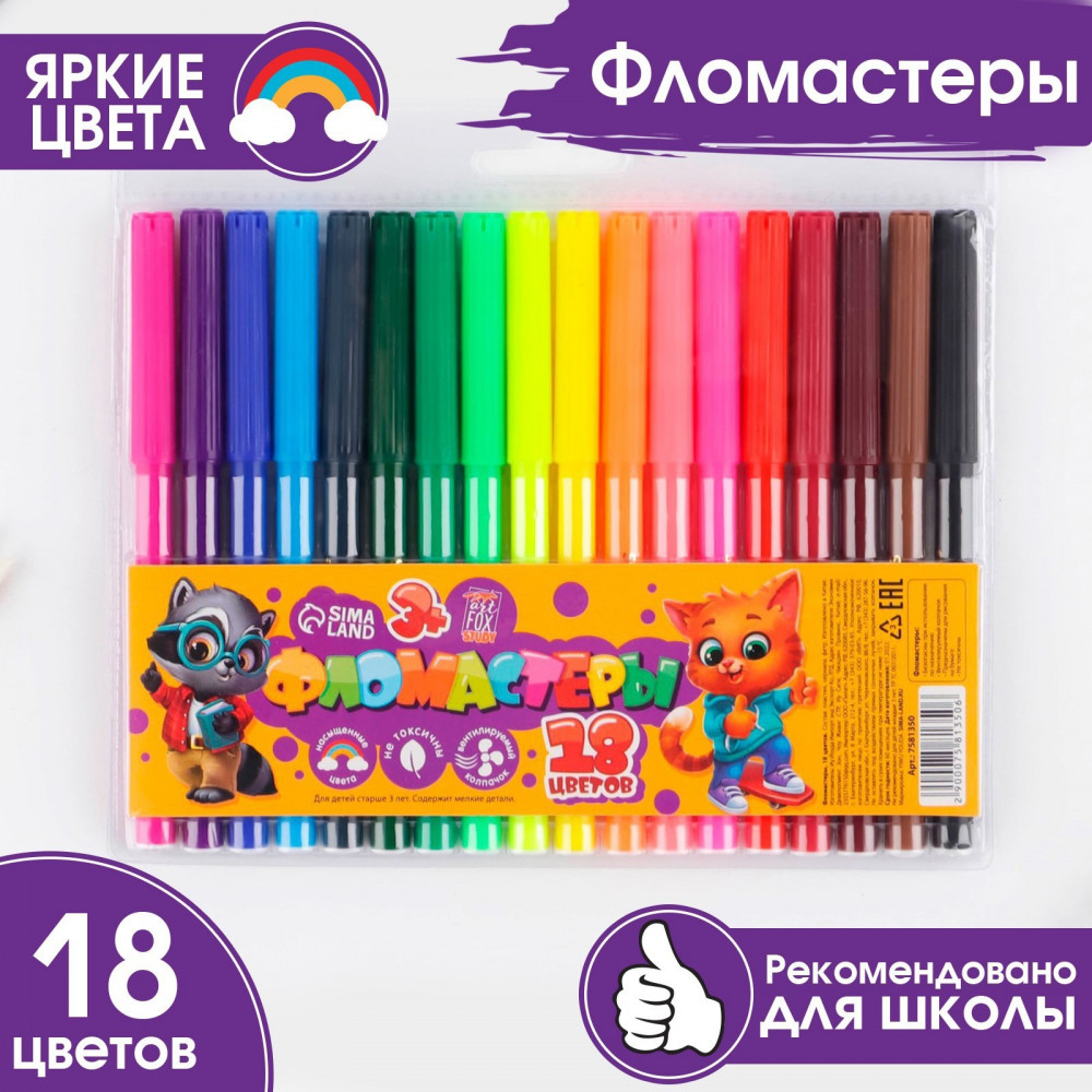 💳 Оплатить за товар можно при получении 🇰🇿 Есть бесплатная доставка по Казахстану от 1 дня 🎁 Копите бонусы с каждой покупки Серия: Study — Персонажи Фломастеры ArtFox серии «Персонажи» с вентилируемым колпачком. Фломастеры сохраняют насыщенный цвет при письме на протяжении всего использования. Фломастеры не токсичны, предназначены для детей старше 3 лет. |