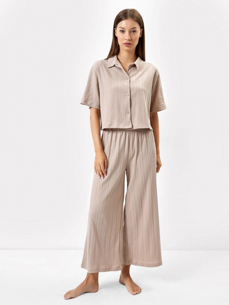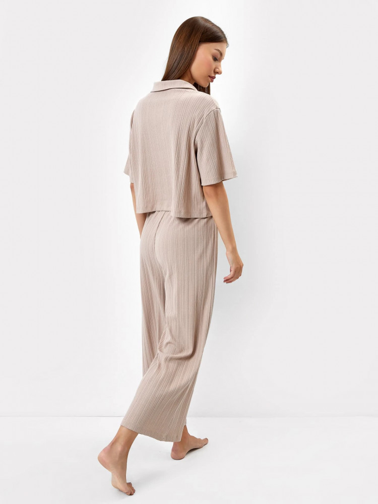 Очень уютный костюм. На рост 164 длина штанин до щиколотки, длиннее, чем на модели.