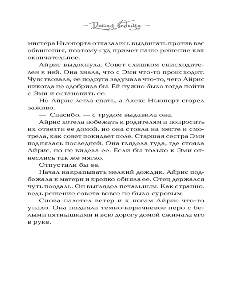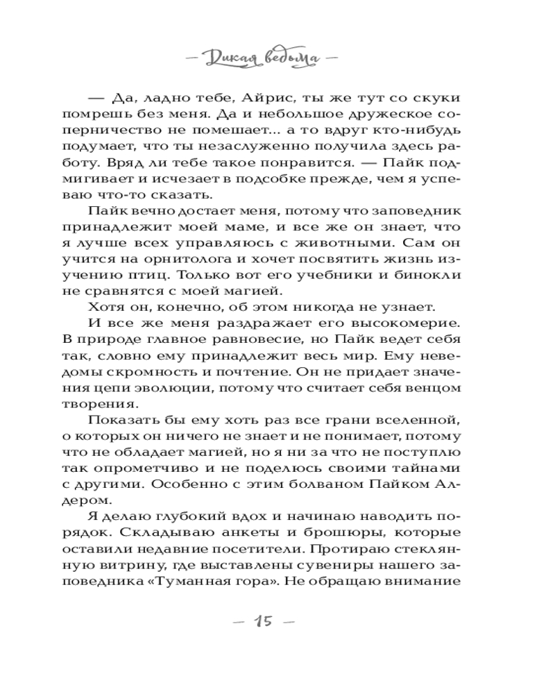 И не важно, что Магический совет признал ее невиновной, не важно, что раньше ее магию считали чудом, — одна ночь на озере перечеркнула все. Переехав в штат Вашингтон, Айрис живет обычной жизнью, скрывая, что она ведьма. Чтобы справиться с тревогами и волнениями, она пишет заклинания, но никогда не применяет их. Ей нравится работать в заповеднике, которым управляет ее мать, но их стажер — студент-орнитолог Пайк Алдер — вызывает у нее лишь отторжение, ведь он ненавидит ведьм.