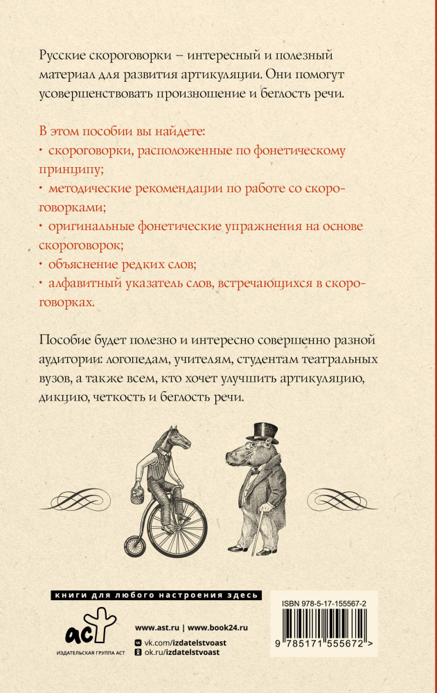 💳 Оплатить за товар можно при получении 🇰🇿 Есть бесплатная доставка по Казахстану от 1 дня 🎁 Копите бонусы с каждой покупки Серия: Прочитать, понять, запомнить Русские скороговорки — интересный и полезный материал для развития артикуляции. Они помогут усовершенствовать произношение и беглость речи. |