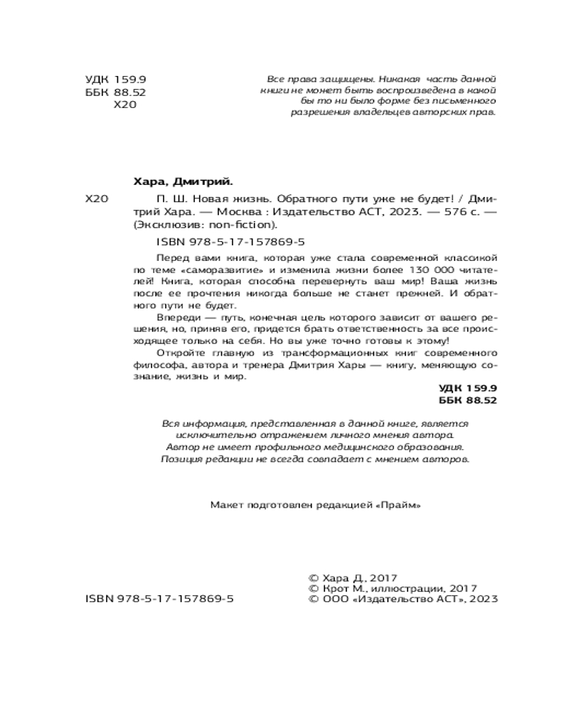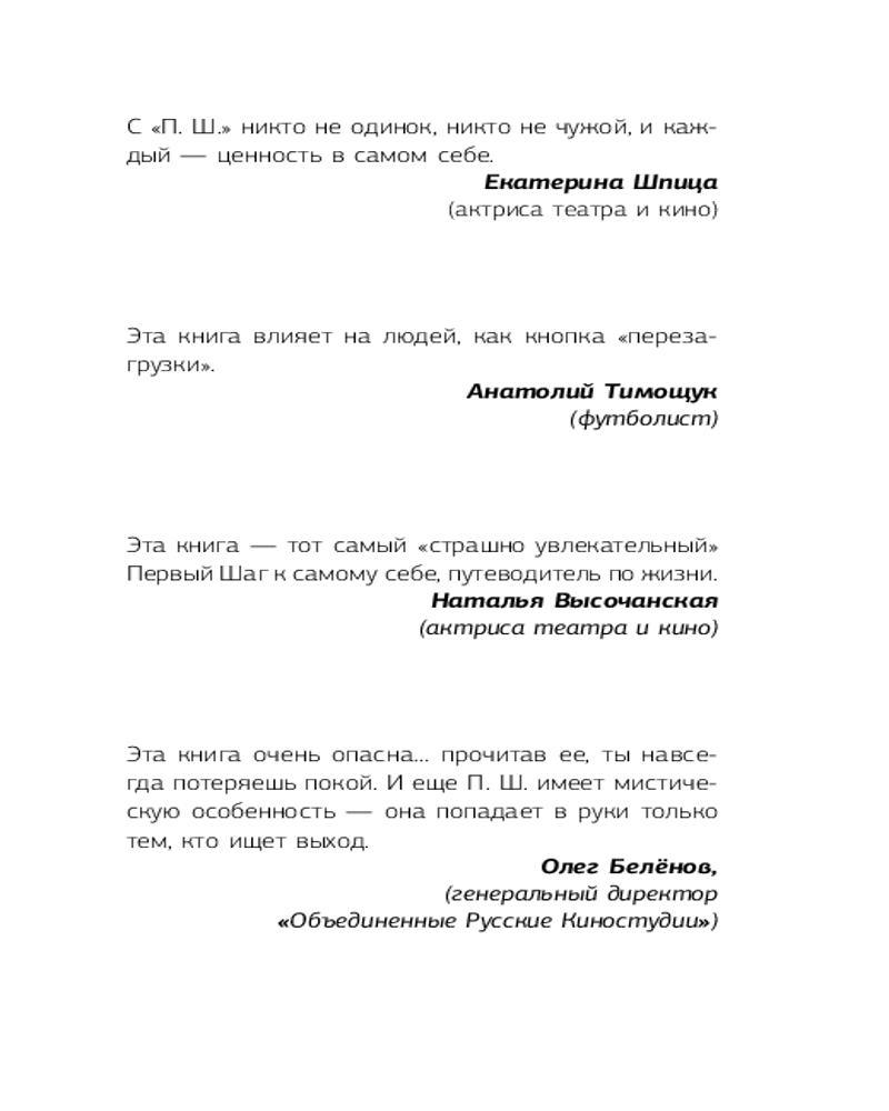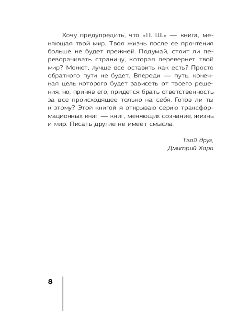 💳 Оплатить за товар можно при получении 🇰🇿 Есть бесплатная доставка по Казахстану от 1 дня 🎁 Копите бонусы с каждой покупки Серия: Эксклюзив: non-fiction «Хочу предупредить, что «П. Ш.» — книга, меняющая твой мир. Твоя жизнь после ее прочтения больше не будет прежней. Подумай, стоит ли переворачивать страницу, которая перевернет твой мир? Может, лучше все оставить как есть? Просто обратного пути не будет. Впереди — путь, конечная цель которого зависит от твоего решения, но, приняв его, придется брать ответственность за все происходящее только на себя. Готов ли ты к этому?« |