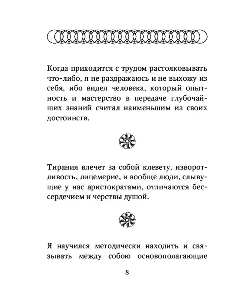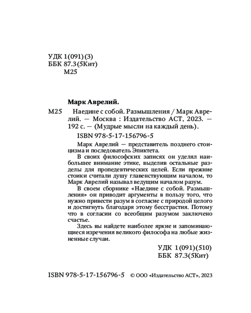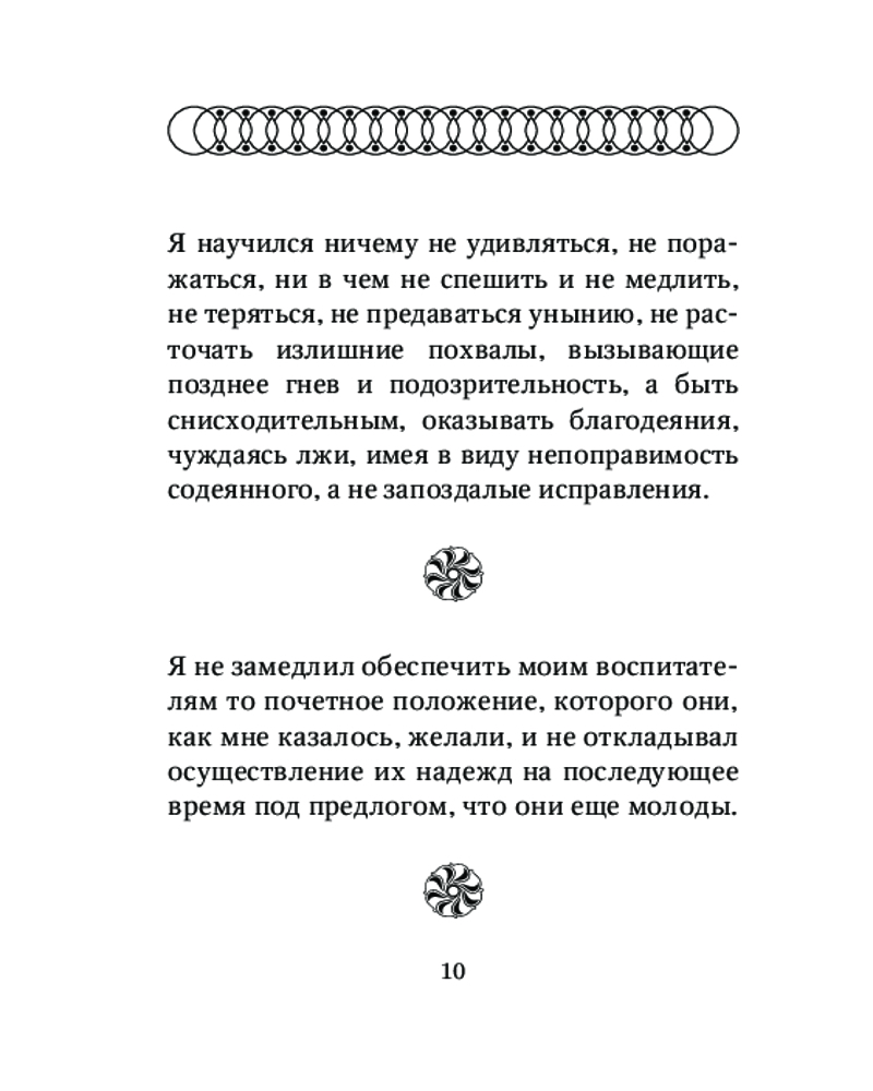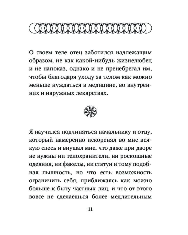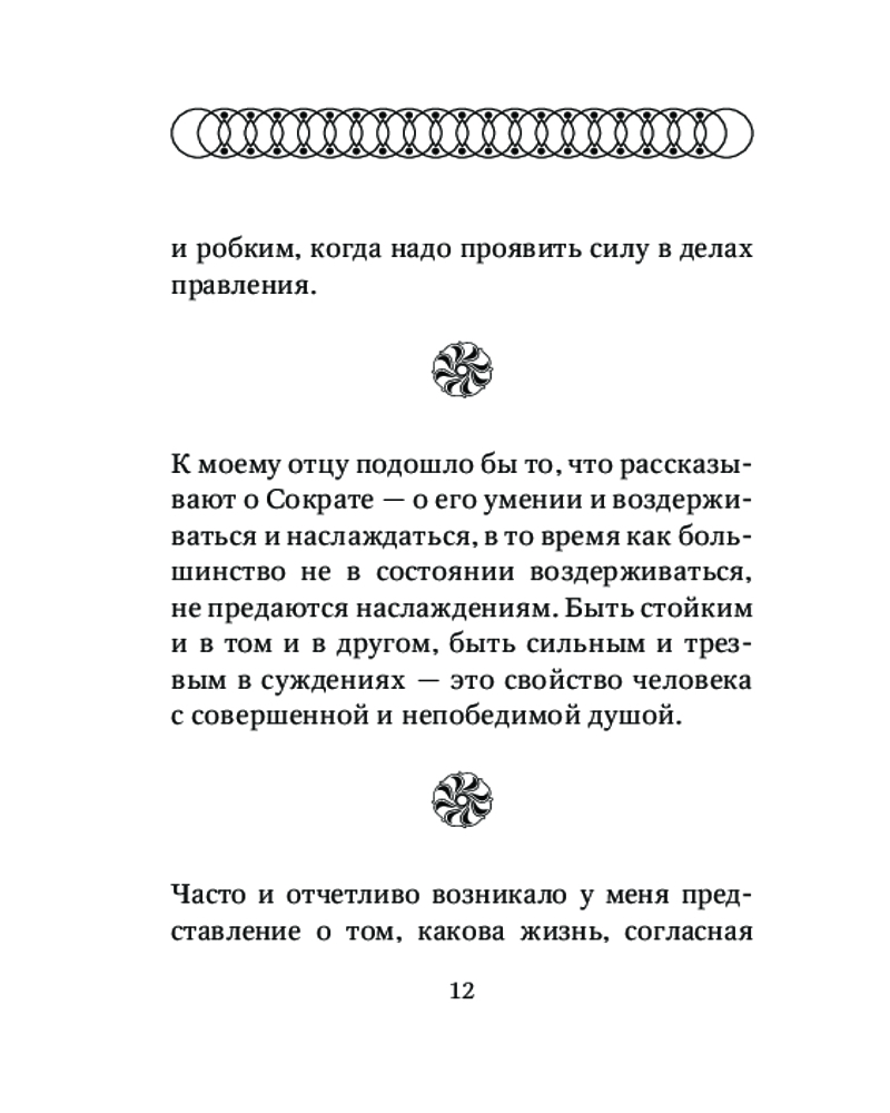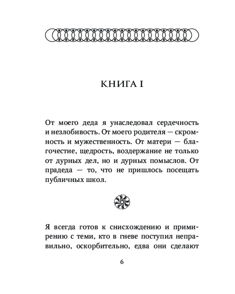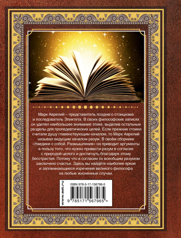 удобная книга. хороший шрифт. белые страницы, пахнут особенно приятно. очень красивая. Насчет содержания. Довольно интересно читать, что писал на досуге римский император. Что то вроде философии, но довольно легкой и понятной всем.