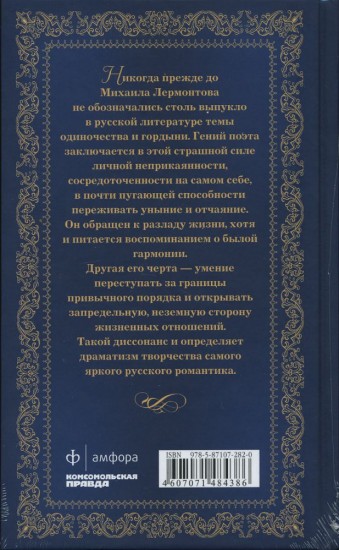 Михаил Юрьевич Лермонтов. Солнце осени. Том 8В данный момент этот товар отсутствует в продаже. Возможно, у нас найдется аналогичный или похожий товар здесь. Серия: Великие поэты Никогда прежде до Михаила Лермонтова не обозначались столь выпукло в русской литературе темы одиночества и гордыни. Гений поэта заключается в этой страшной силе личной неприкаянности, сосредоточенности на самом себе, в почти пугающей способности переживать уныние и отчаяние. Он обращен к разладу жизни, хотя и питается воспоминанием о былой гармонии. Другая его черта - умение переступать за границы привычного порядка и открывать запредельную, неземную сторону жизненных отношений. Такой диссонанс и определяет драматизм творчества самого яркого русского романтика. |