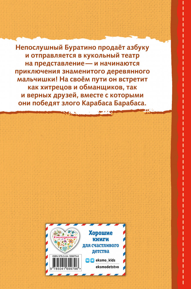 Сбежать от Карабаса Барабаса, уйти из лап разбойников, помочь Пьеро вновь встретить Мальвину и открыть тайну золотого ключика — вот какие приключения ждут непослушного Буратино. Но со всеми трудностями можно справиться, если не унывать, заручиться поддержкой верных друзей и смело идти к своей цели.
