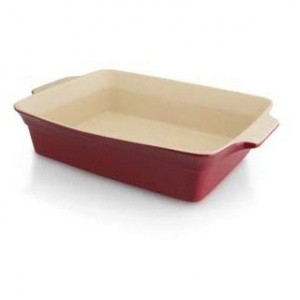 Данная модель прямоугольного блюда для выпечки изготовлена из высококачественной керамики. Данная посуда устойчива к ударам, а такжке термоустойчива; поверхность сохраняет свой цвет, а пища - естественный аромат. Ручки блюда удобно зажимаются большим пальцем, позволяют уверенно и безопасно доставать посуду из духовки или сервировать обеденный стол. Внешний размер: 37,5 см х 22 см х 6,5 см. Объем: 2,5 л. Цвет: снаружи - тепло-красная глазурь; внутри - кремовая глазурь. Теплоустойчивость керамического изделия до 200°С. Блюдо отлично подходит для мытья в посудомоечной машине.