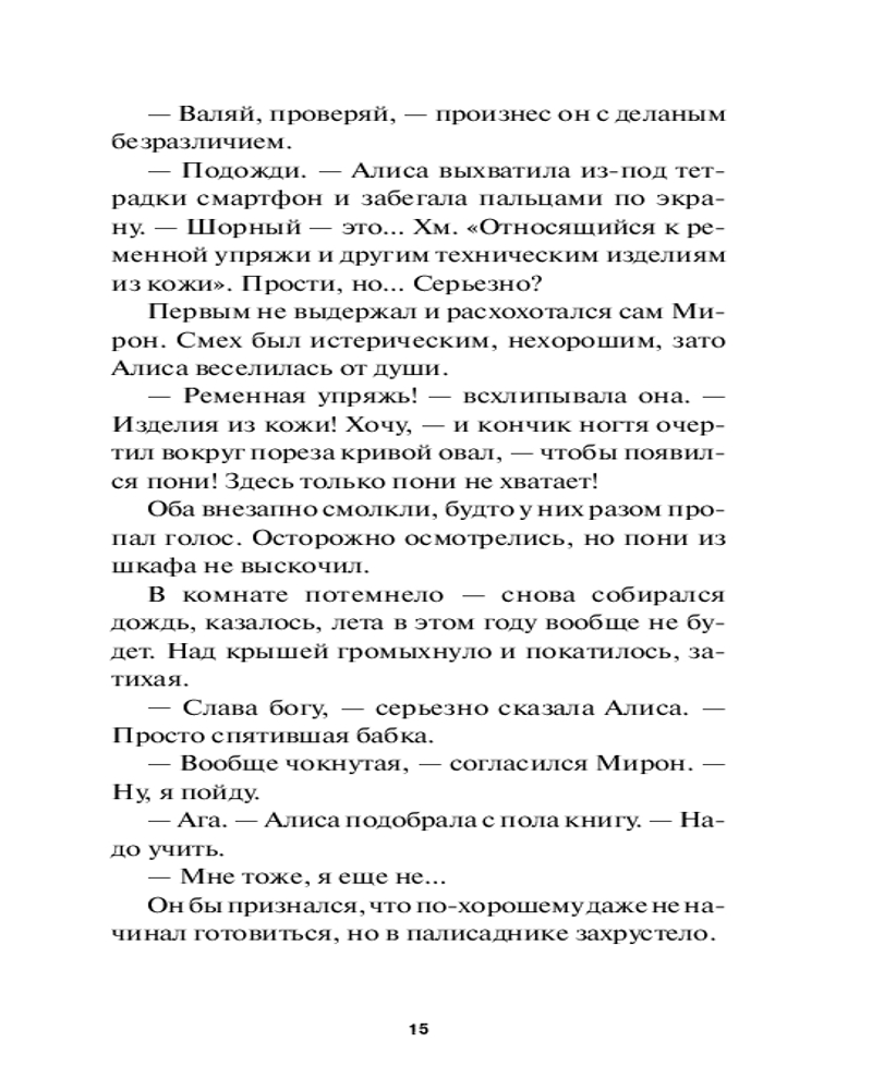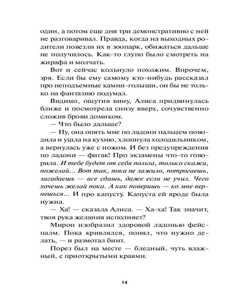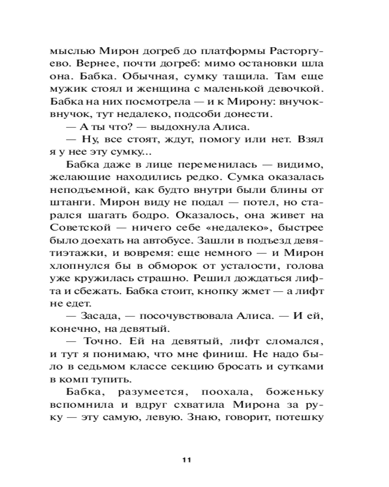 💳 Оплатить за товар можно при получении 🇰🇿 Есть бесплатная доставка по Казахстану от 1 дня 🎁 Копите бонусы с каждой покупки Серия: Red Violet. Темные миры Мирон Отдельнов живет в подмосковном Видном, дружит с соседкой Алисой и готовится к ЕГЭ. Вроде бы все идет по плану (не самому продуманному, но какой есть), пока однажды он не решает помочь старушке дотащить до дома сумку... Так Мирон случайно поступает в подмастерья к ведьме и узнает, что может исполнить любое желание — главное, принести «жертвочку». Вот только стоят ли эти желания встреч с опасной и хитрой городской нечистью? Ведь каждая такая встреча может оказаться последней... |