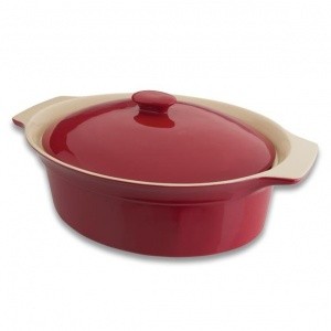 Жаровня яркой расцветки, годится для использования в духовке. В работе еще не проверила.
