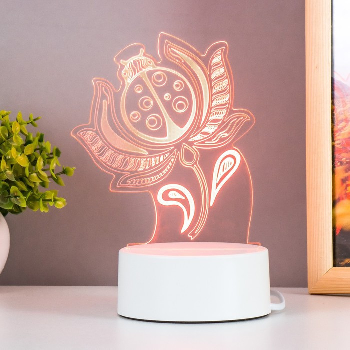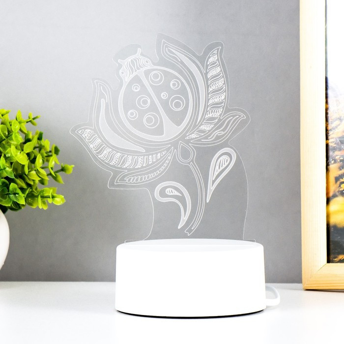 Секрет заключается в правильном расположении света и точном узоре. Тонкие линии, сделанные лазерным лучом образуют фигуру божьей коровки. Выключив лампу, Вам не сразу удастся перестроится, ведь иллюзия невероятно полная и глубокая. Декоративный сетевой светодиодный светильник с 3D-рисунком станет отличным украшением прикроватной тумбы или детской комнаты. Во включённом состоянии появляется глубина и объём изображения.