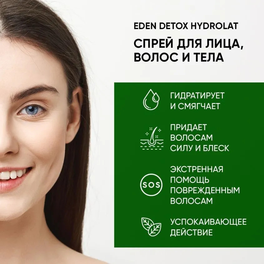 Eden cosmetics Спрей для лица, волос и тела увлажняющий с гидролатами ромашки и чайного дерева+78