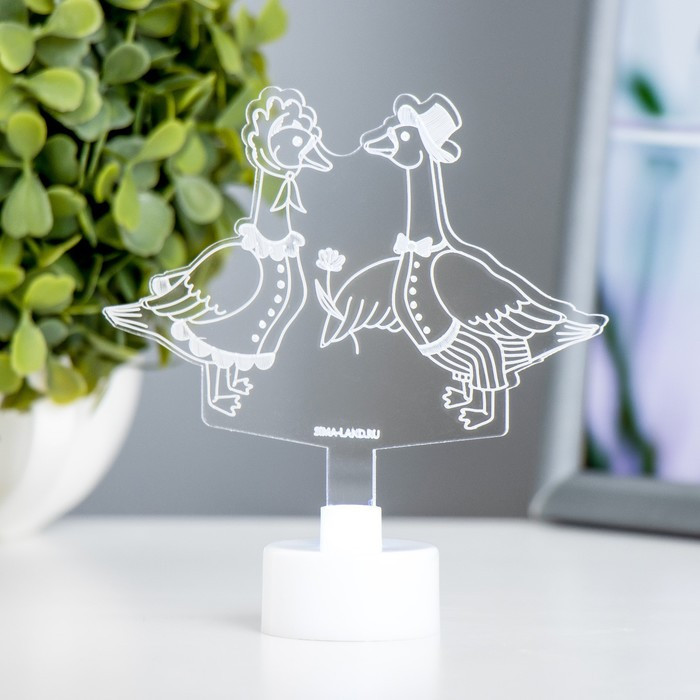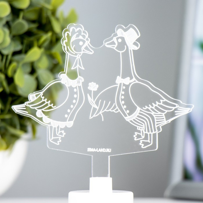 Секрет заключается в правильном расположении света и точном узоре. Тонкие линии, сделанные лазерным лучом образуют фигуру гусей. Выключив лампу, Вам не сразу удастся перестроится, ведь иллюзия невероятно полная и глубокая. Декоративный сетевой светодиодный светильник с 3D-рисунком станет отличным украшением прикроватной тумбы или детской комнаты. Во включённом состоянии появляется глубина и объём изображения.