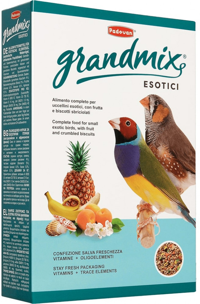 Комплексный корм для экзотических птиц (амадины, австралийские, астрильдовые, африканские). Комплексный, высококачественный основной корм с фруктами и бисквитной крошкой, с минеральными и витаминными добавками для экзотических птиц.