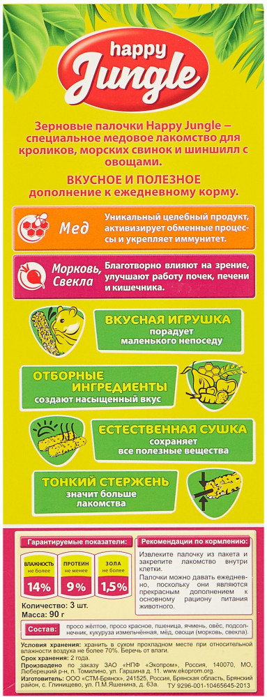 Happy Jungle Палочки для крупных грызунов «Мед и овощи»В данный момент этот товар отсутствует в продаже. Возможно, у нас найдется аналогичный или похожий товар здесь. Условия хранения товара: температурный режим от -10 до +25°С. |