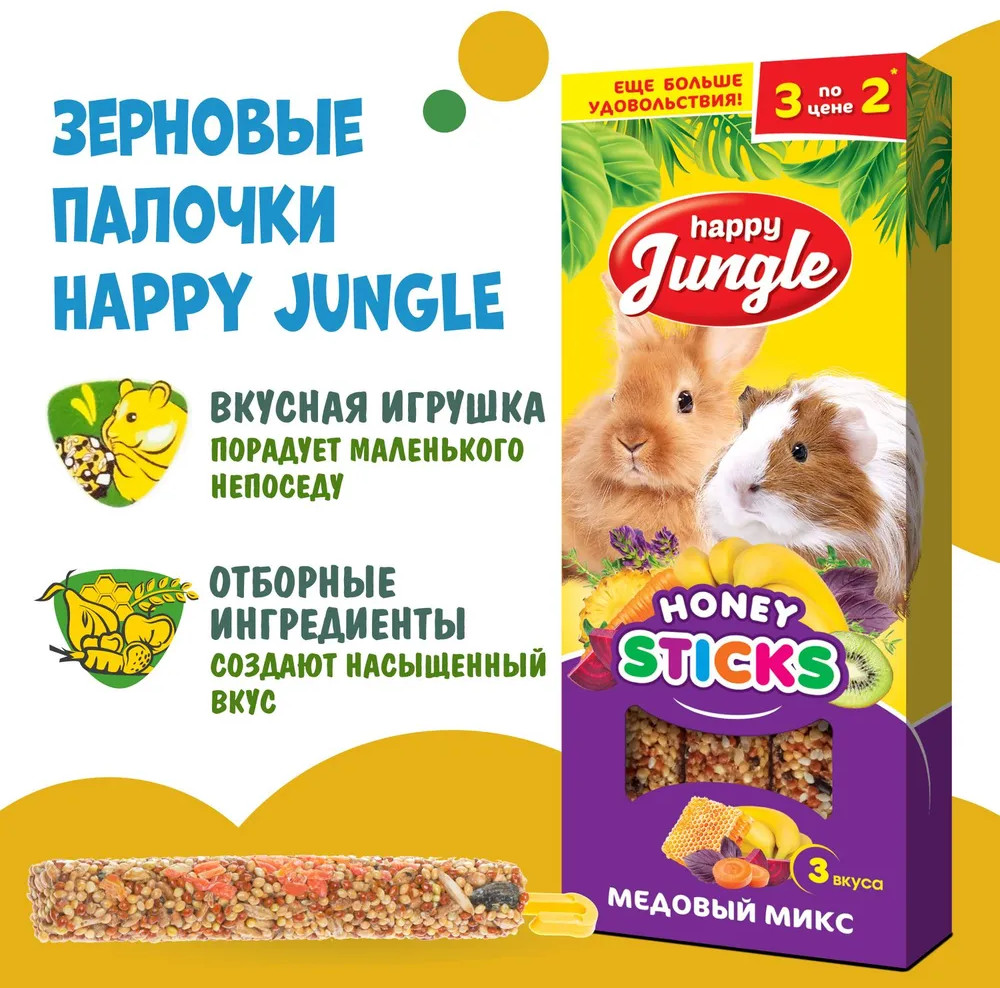 Happy Jungle Палочки для крупных грызунов «Медовый микс»-25% +39