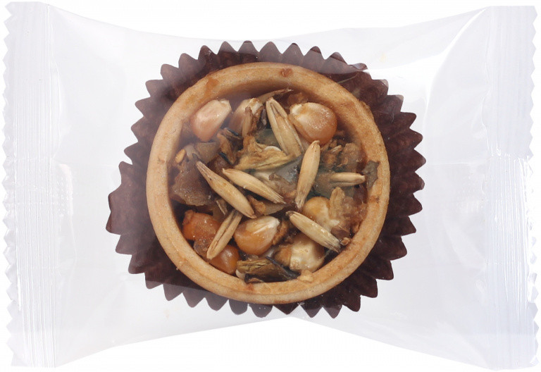 Тарталетки представляют собой корзиночки из хрустящего пресного теста с лакомой и полезной для грызунов начинкой. Обогащают ежедневный рацион витаминами, макро — и микроэлементами. Подходят для морских свинок всех пород и возрастов. Особая структура выпечки способствует укреплению десен и зубов. Продукт не содержит искусственных красителей и ароматизаторов. Тыква, входящая в состав продукта, содержит большое количество каротина и витаминов, легко усваивается организмом грызуна. В тыкве содержится кальций, калий, фосфор, железо, медь, фтор и цинк, каротин, витамины С, группы В. Ананас богат сахарозой, лимонной и особенно аскорбиновой кислотой, кроме этого в ананасе присутствуют витамины В1, В2, В12, РР, провитамин А, минеральные вещества и фермент бромелин, благодаря чему этот продукт стимулирует пищеварение и повышает иммунитет. |
