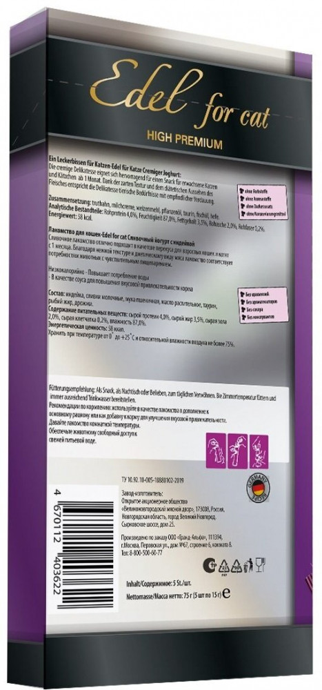 Edel Cat Лакомство для кошек «Крем-суп со сливочным йогуртом и индейкой»В данный момент этот товар отсутствует в продаже. Возможно, у нас найдется аналогичный или похожий товар здесь. Условия хранения товара: температурный режим от -10 до +25°С. |