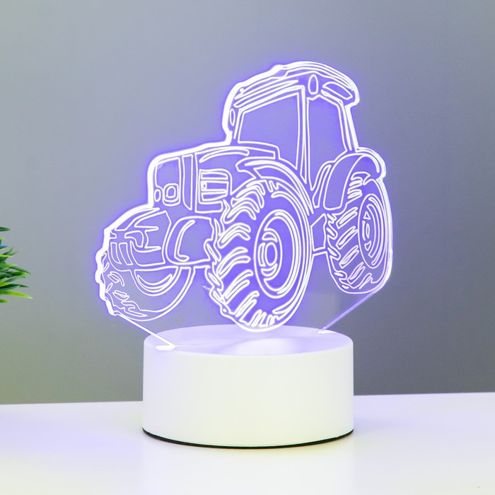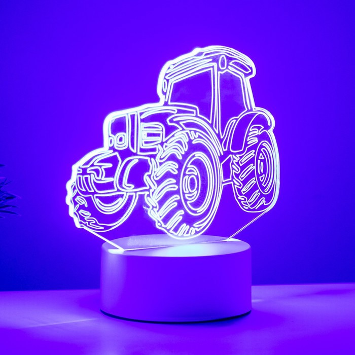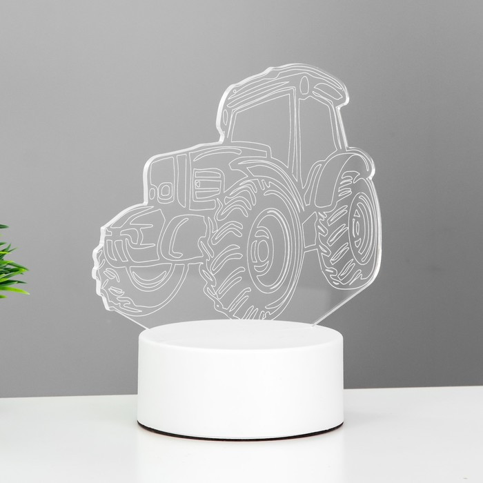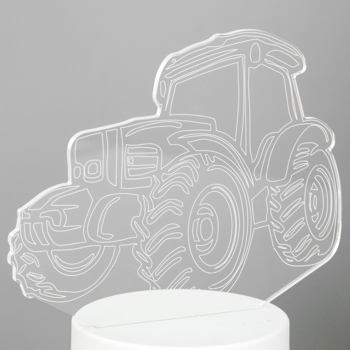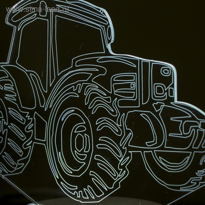 Секрет заключается в правильном расположении света и точном узоре. Тонкие линии, сделанные лазерным лучом образуют фигуру трактора. Выключив лампу, Вам не сразу удастся перестроится, ведь иллюзия невероятно полная и глубокая. Декоративный сетевой светодиодный светильник с 3D-рисунком станет отличным украшением прикроватной тумбы или детской комнаты. Во включённом состоянии появляется глубина и объём изображения.