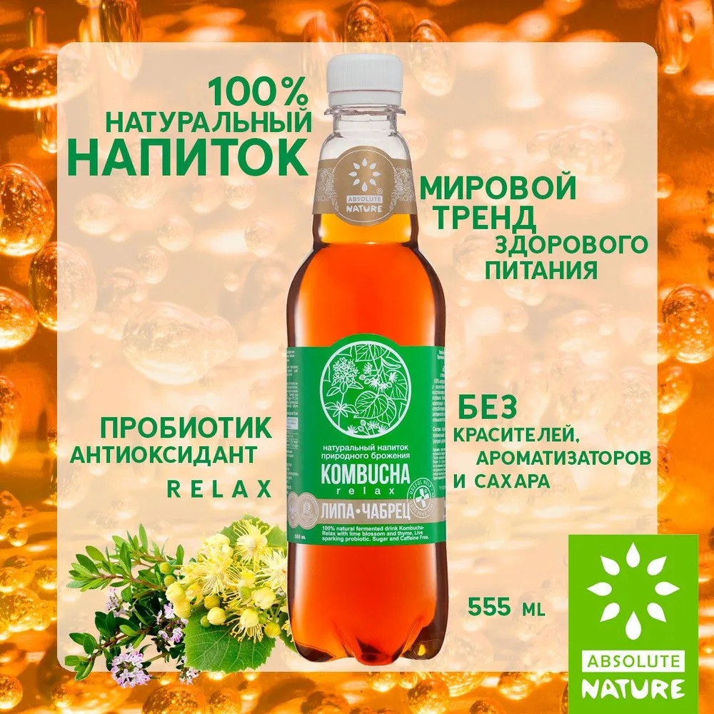 Отзывы «Напиток натурального брожения на чайном грибе с цветами липы и чабрецом «Kombucha Relax»»