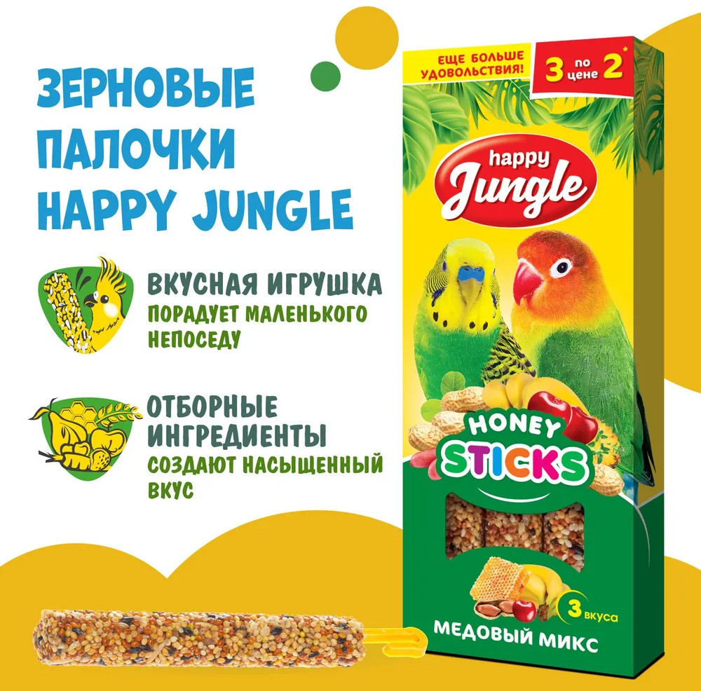 Happy Jungle Палочки для птиц «Медовый микс»