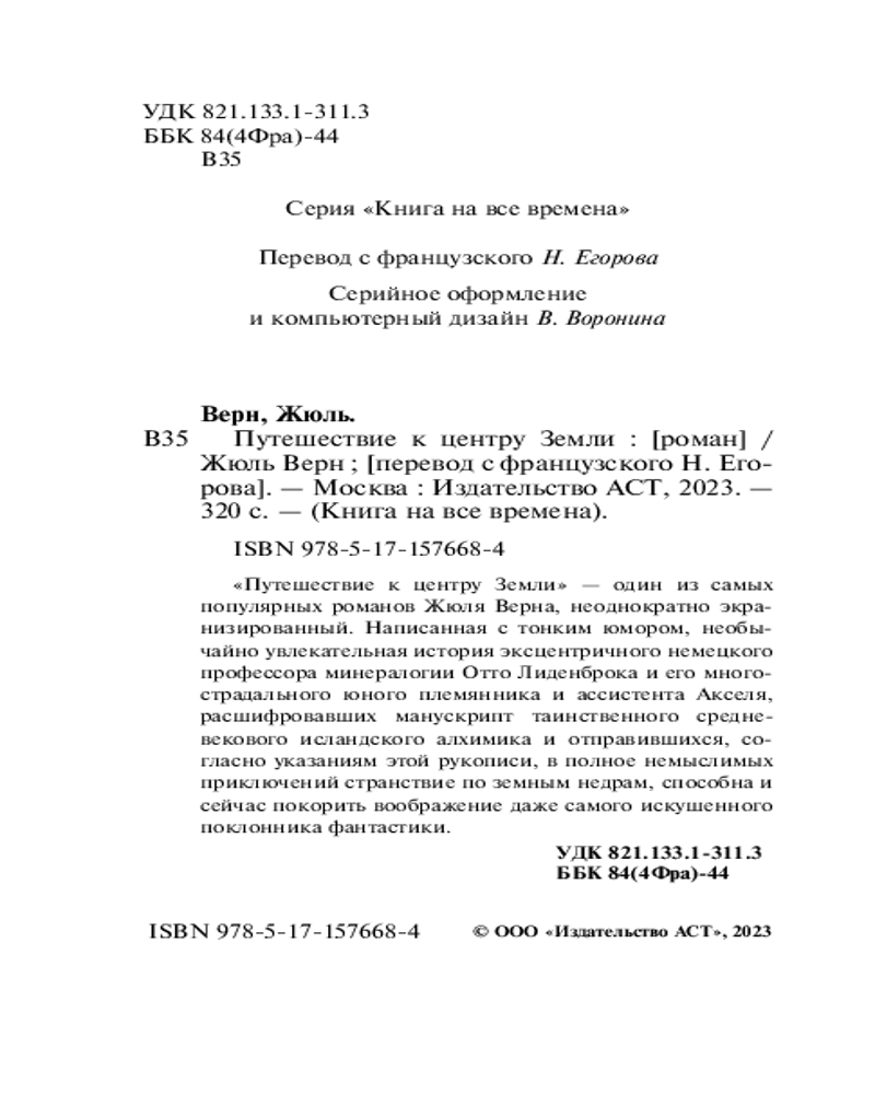 В данный момент этот товар отсутствует в продаже. Возможно, у нас найдется аналогичный или похожий товар здесь. Серия: Книга на все времена (нов/м) «Путешествие к центру Земли» — один из самых популярных романов Жюля Верна, неоднократно экранизированный. Написанная с тонким юмором, необычайно увлекательная история эксцентричного немецкого профессора минералогии Отто Лиденброка и его многострадального юного племянника и ассистента Акселя, расшифровавших манускрипт таинственного средневекового исландского алхимика и отправившихся, согласно указаниям этой рукописи, в полное немыслимых приключений странствие по земным недрам, способна и сейчас покорить воображение даже самого искушенного поклонника фантастики. |