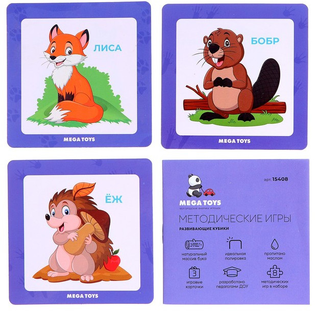 💳 Оплатить за товар можно при получении 🇰🇿 Есть бесплатная доставка по Казахстану от 1 дня 🎁 Копите бонусы с каждой покупки Кубики изготовлены из натурального массива бука. В набор входят 4 кубика с изображением 6-ти животных, 3 двухсторонние карточки и обучающее методическое пособие. Благодаря многоступенчатой обработке и шлифовке они очень гладкие и не имеют острых углов, все грани закруглены и абсолютно безопасны для ребёнка. Нанесение рисунка методом прямой печати обеспечивает яркое и насыщенное изображение персонажей, исключает отслаивание рисунка в отличии от наклеек. Поверхность устойчива к истиранию и выцветанию. |