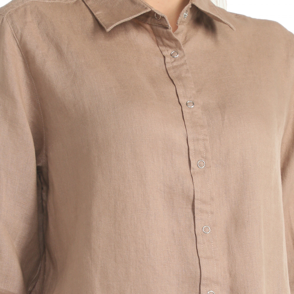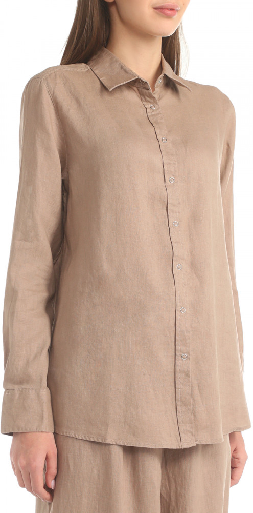 Хорошая приятная к телу рубашка, лен хорошего качества, нежный цвет (голубой), брала на размер больше, после стирки сел немного, как раз как надо, надеюсь, что больше не сядет... Удобно как второй слой на выпуск с топом или футболкой.. Единственное, мне не очень понравились кнопки, вроде не портят в целом рубашку.