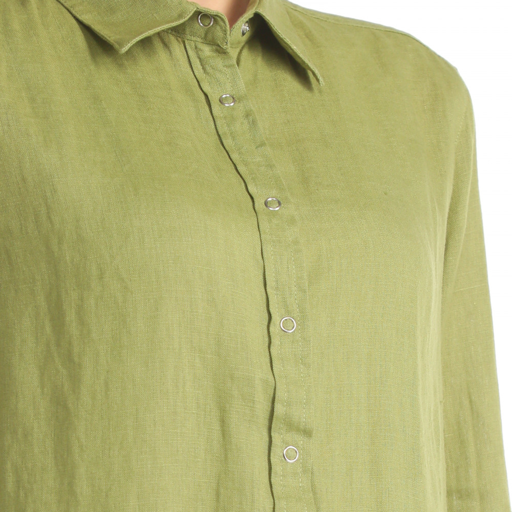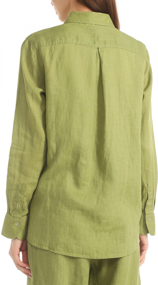 Хорошая приятная к телу рубашка, лен хорошего качества, нежный цвет (голубой), брала на размер больше, после стирки сел немного, как раз как надо, надеюсь, что больше не сядет... Удобно как второй слой на выпуск с топом или футболкой.. Единственное, мне не очень понравились кнопки, вроде не портят в целом рубашку.