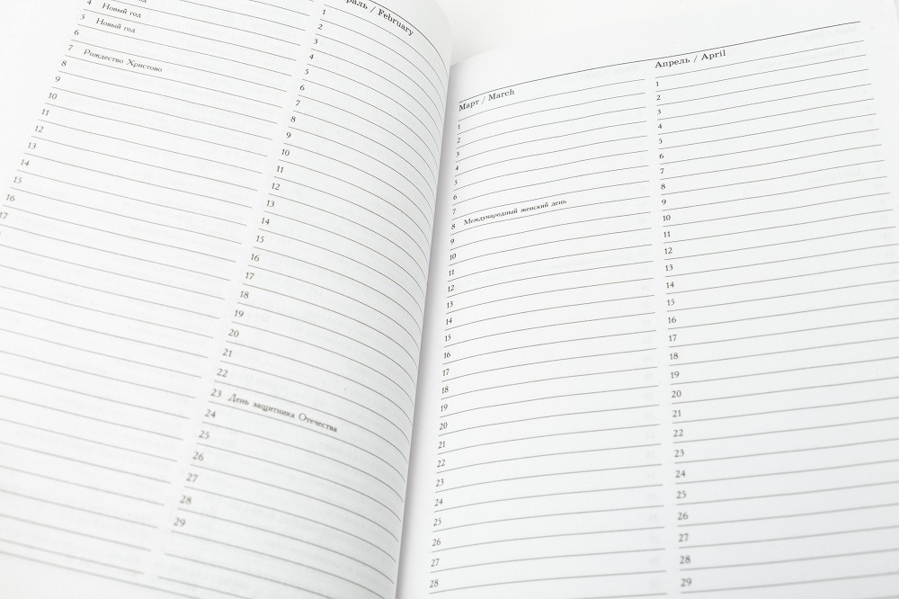 Стандартные листы, можно самому ставить нужную дату в углу.