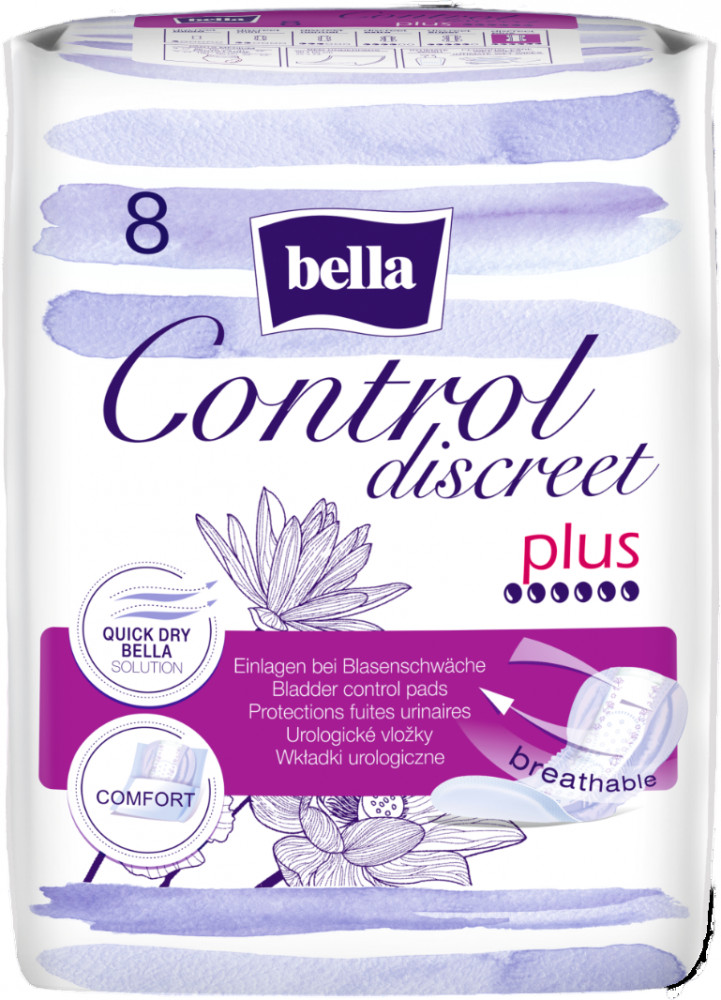 Урологические прокладки Bella Control Discreet — это гигиенический продукт для активных женщин, которые хотят сохранить полный контроль над неприятным состоянием недержания мочи. Они прекрасно впитывают влагу, уменьшают интимный запах и позволяют коже дышать, что сводит к минимуму риск возникновения аллергических реакций.