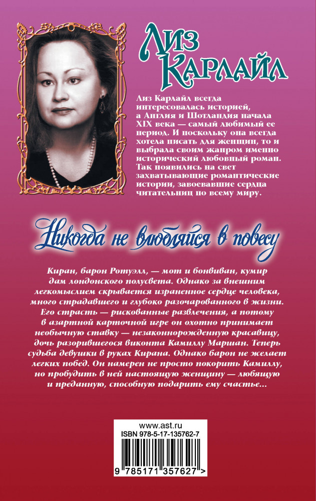 💳 Оплатить за товар можно при получении 🇰🇿 Есть бесплатная доставка по Казахстану от 1 дня 🎁 Копите бонусы с каждой покупки Серия: Очарование Киран, барон Ротуэлл, — мот и бонвиван, кумир дам лондонского полусвета. Однако за внешним легкомыслием скрывается израненное сердце человека, много страдавшего и глубоко разочарованного в жизни. Его страсть — рискованные развлечения, а потому в азартной карточной игре он охотно принимает необычную ставку — незаконнорожденную красавицу, дочь разорившегося виконта Камиллу Маршан.Теперь судьба девушки в руках Кирана. Однако барон не желает легких побед. Он намерен не просто покорить Камиллу, но пробудить в ней настоящую женщину — любящую и преданную, способную подарить ему счастье... |