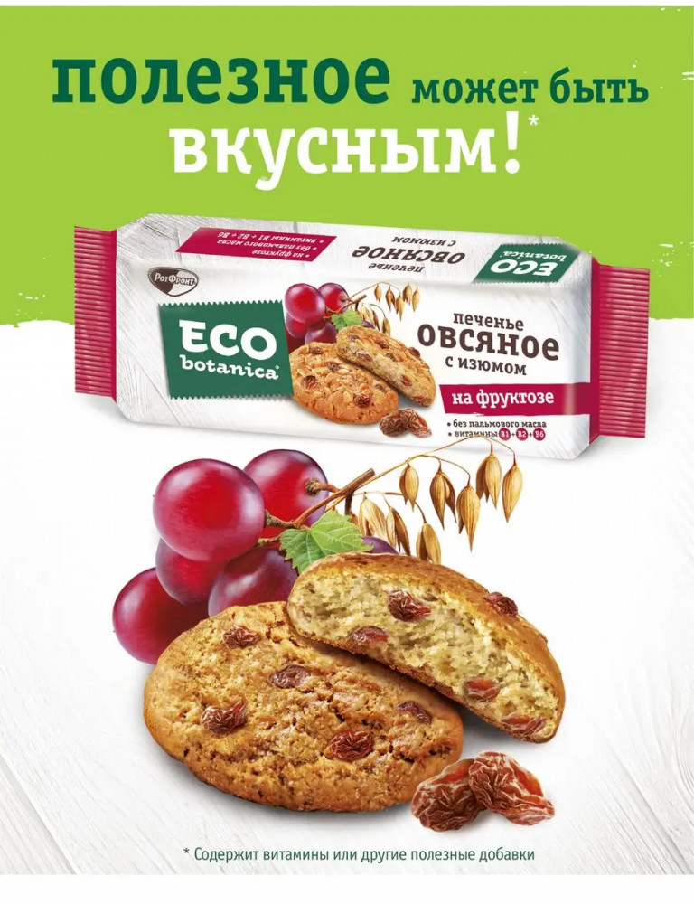Eco botanica Печенье овсяное на фруктозе с изюмом