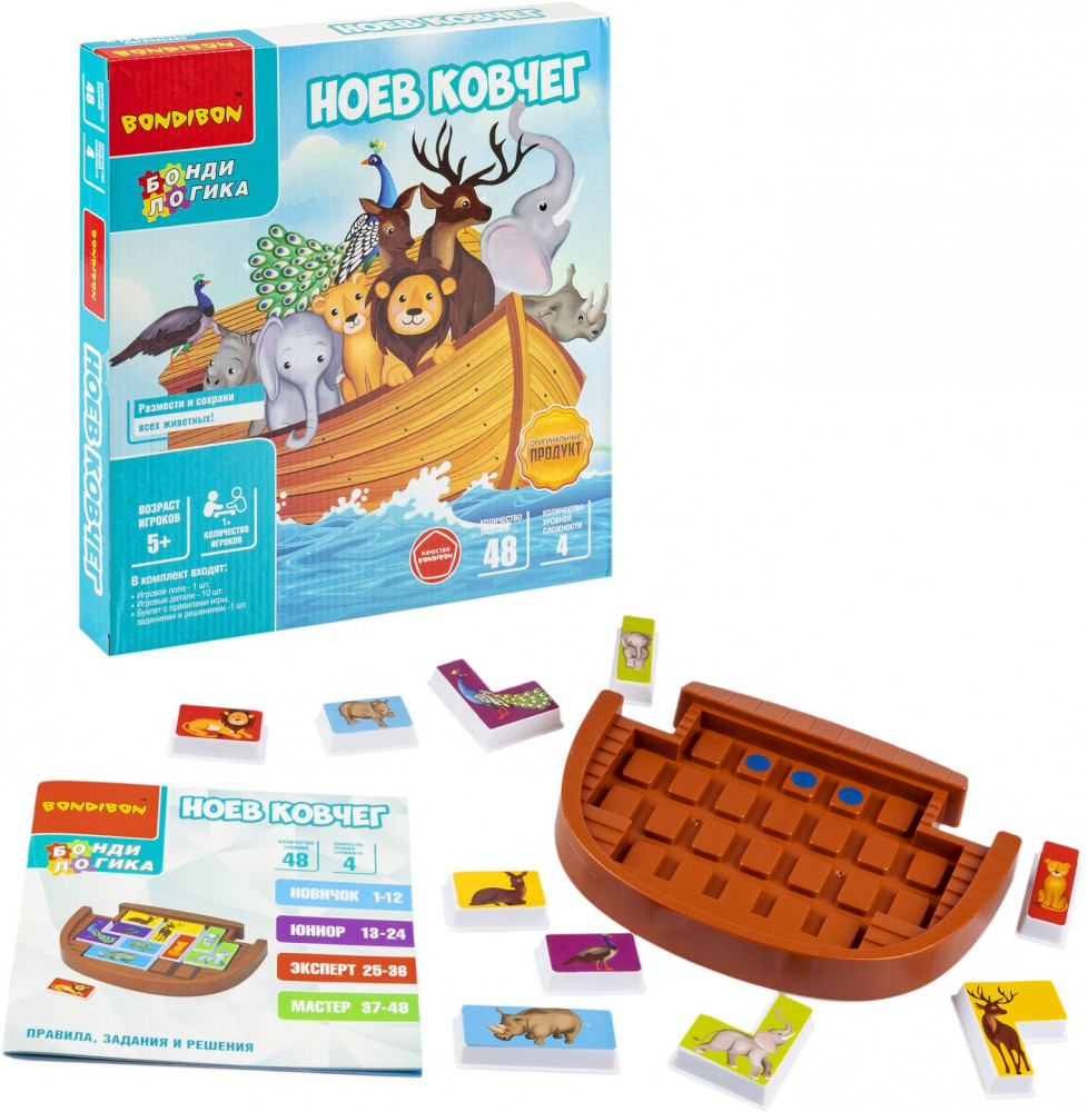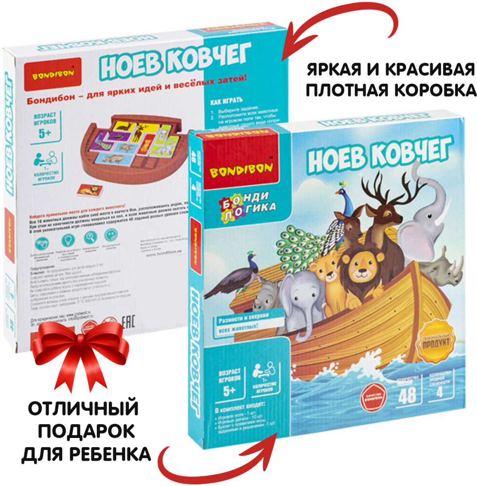 💳 Оплатить за товар можно при получении 🇰🇿 Есть бесплатная доставка по Казахстану от 1 дня 🎁 Копите бонусы с каждой покупки Серия: Бондилогика Уникальная логическая игра-головоломка для отличного времяпрепровождения и тренировки юного ума. Животные торопятся успеть занять свои места на спасительном ковчеге, построенном Ноем. Но, несмотря на внушительные размеры ковчега, разместиться здесь всем не так-то просто, ведь все животные пришли парами. Помоги всем животных найти свое место, только помни, что пары ни в коем случаем нельзя разлучать! Эта добрая и красивая игра развивает логическое мышление, познавательные способности, зрительное и пространственное восприятие. |