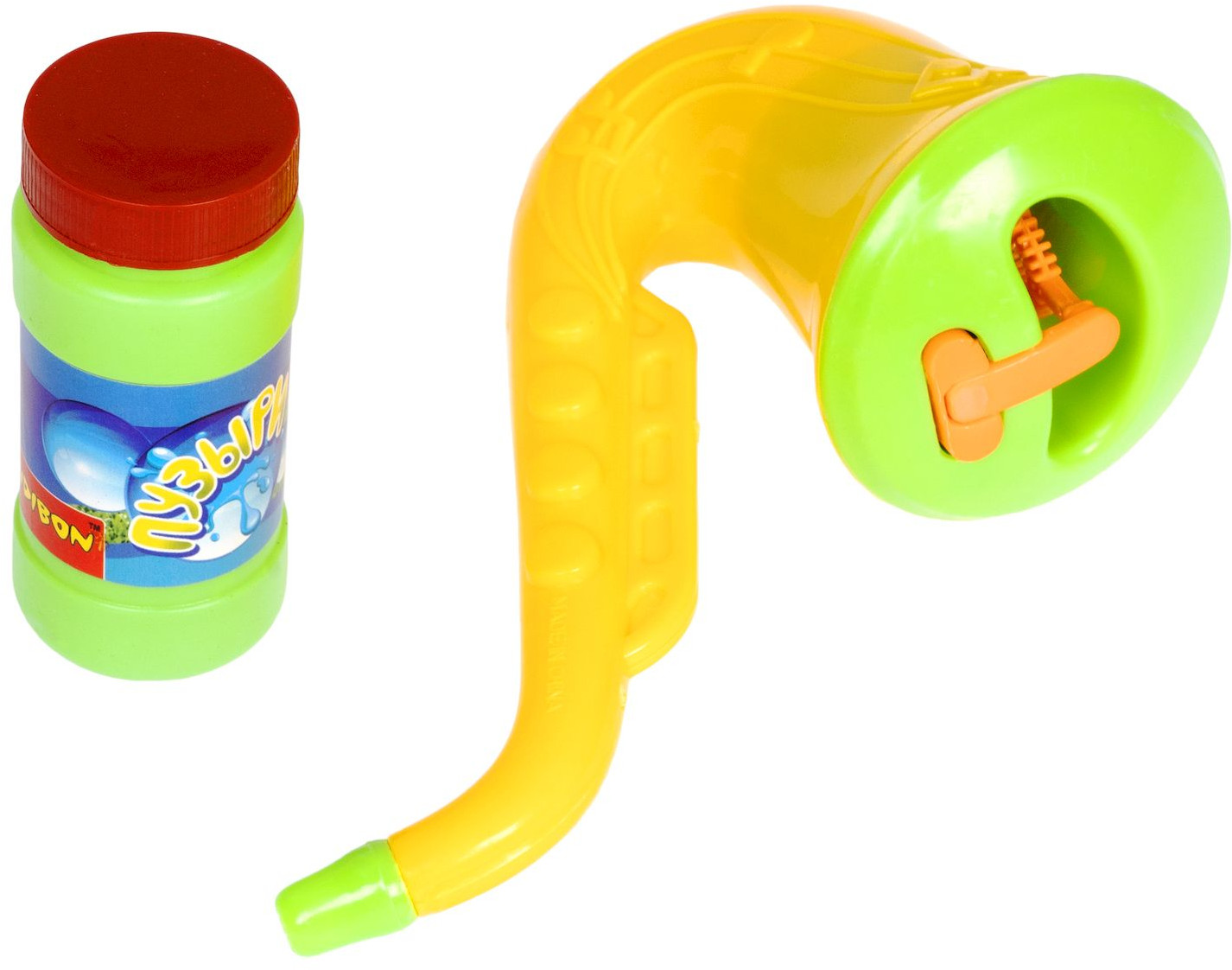 Корпус устройства для запуска мыльных пузырей жёлтого цвета. В наборе 1 резервуар с мыльным раствором 45 мл.
