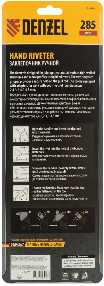 Denzel Заклепочник ручной поворотный-20% +194