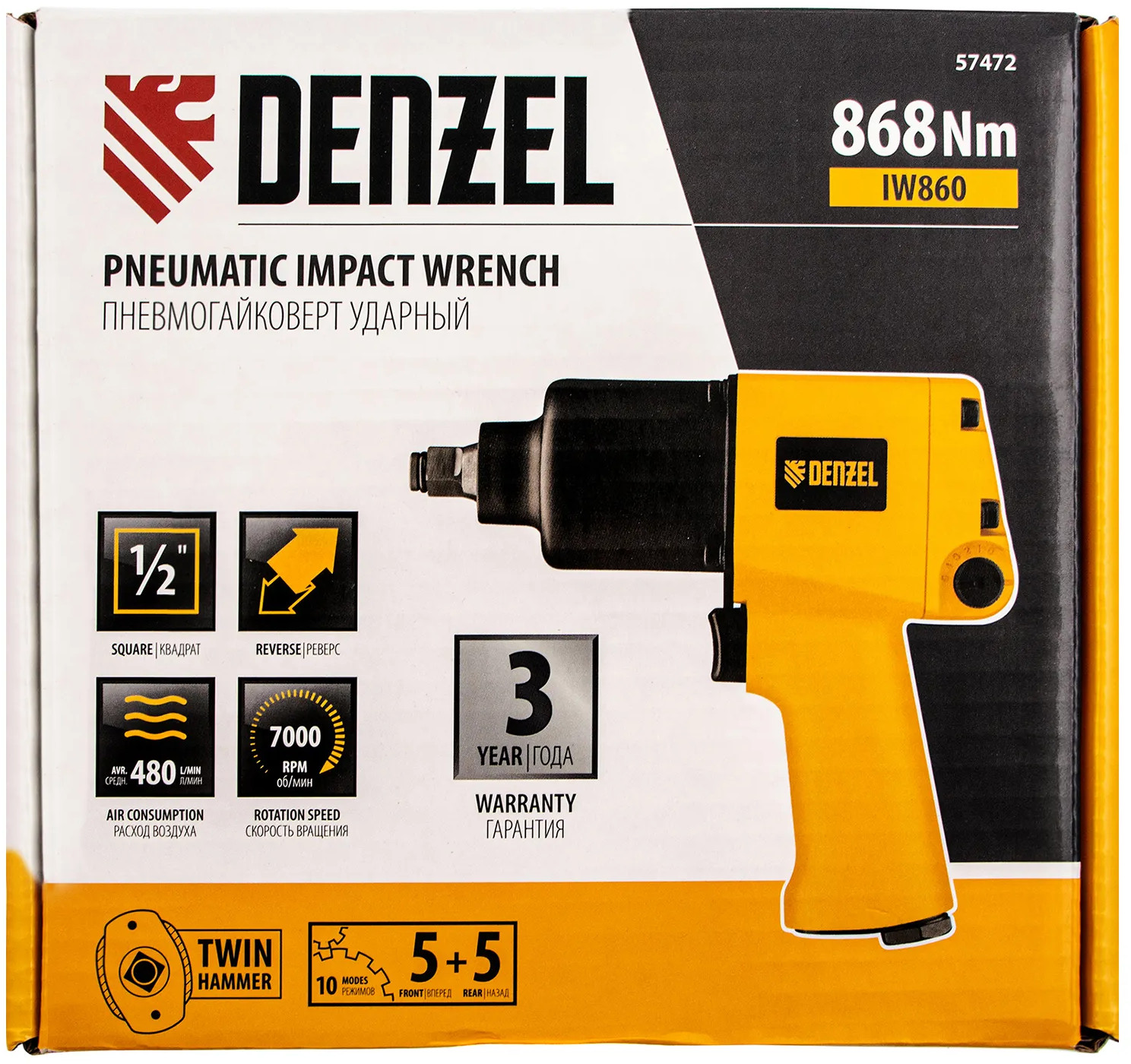 💳 Оплатить за товар можно при получении 🇰🇿 Есть бесплатная доставка по Казахстану 🎁 Копите бонусы с каждой покупки Ударный пневмогайковерт Denzel IW860 с присоединительным квадратом и максимальным крутящим моментом 868 Нм обеспечивает скорость вращения шпинделя до 7000 об/мин, благодаря чему способен быстро закручивать и откручивать резьбовой крепеж и легко справляться с высоконагруженными соединениями. Предназначен для профессионального использования в мастерской, цехе, на строительной площадке и станции шиномонтажа. 10 ступеней регулировки скорости позволяют установить оптимальный режим работы в соответствии с типом крепежа. |