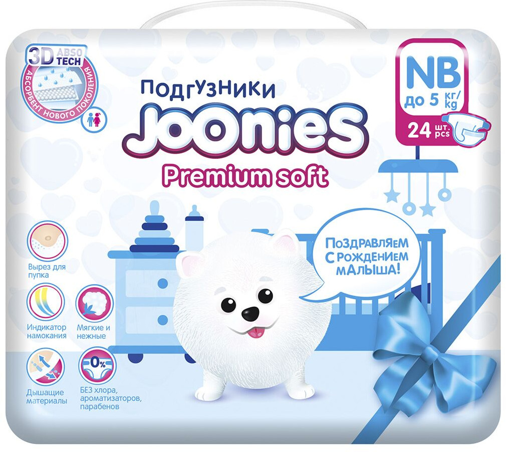 • все материалы в подгузниках TM JOONIES PremiumSoft «дышащие» — кожа малыша дышит, находясь в подгузнике;