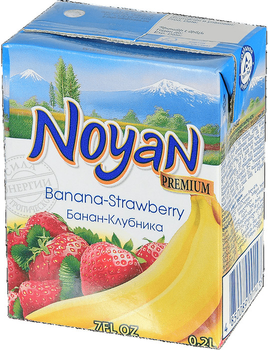 Нектар приготовлен из бананового пюре и сока клубники, выращенной в жаркой Армении. Отличается аппетитным ароматом и насыщенным фруктово-ягодным вкусом с кисло-сладкими нотками.