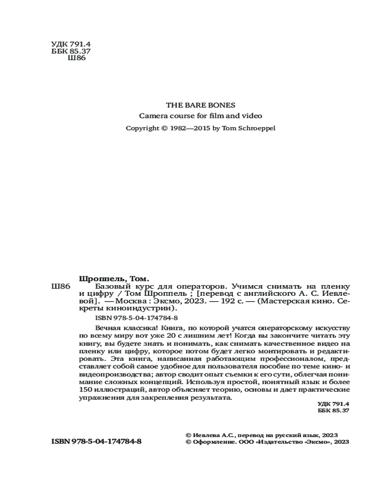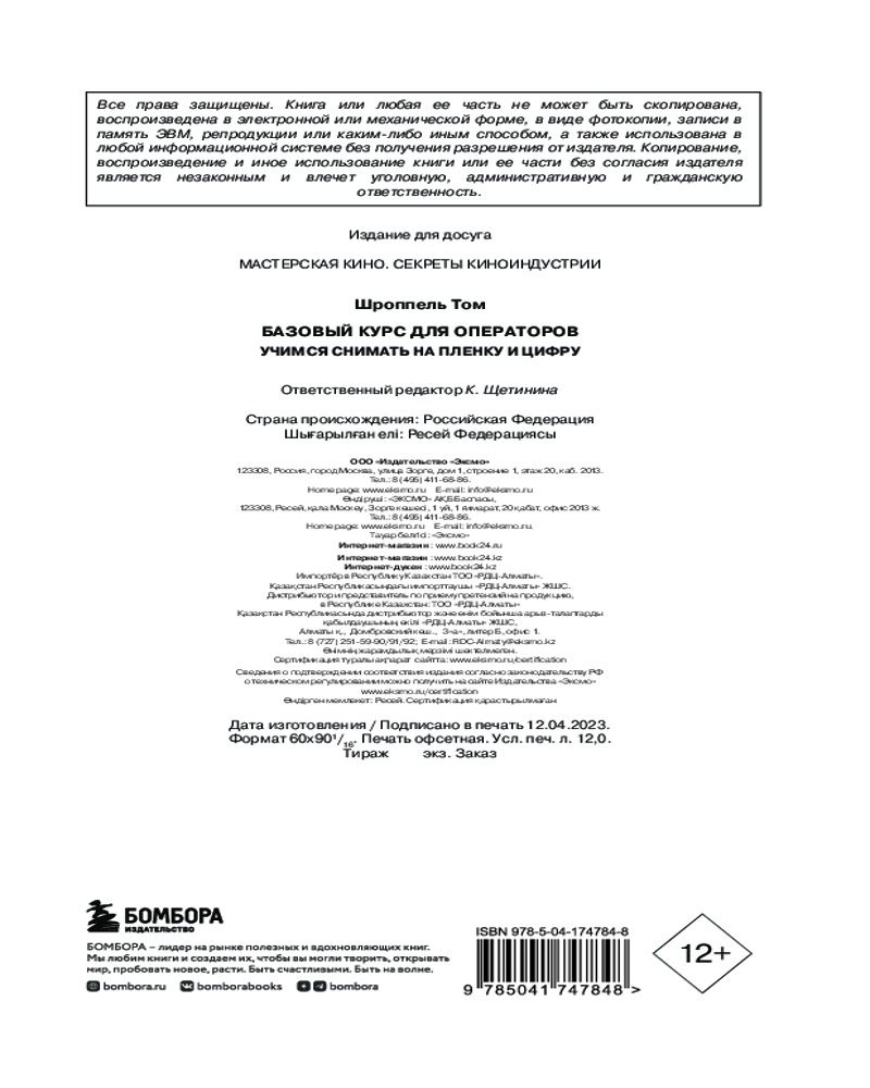 💳 Оплатить за товар можно при получении 🇰🇿 Есть бесплатная доставка по Казахстану от 1 дня 🎁 Копите бонусы с каждой покупки Серия: Мастерская кино. Секреты киноиндустрии Впервые на русском языке легендарная книга по операторскому искусству, по которой учатся операторскому искусству по всему миру вот уже 20 с лишним лет! «Коротко и по делу. Учимся снимать на пленку и цифру» — это базовая книга по кинопроизводству во всем мире. |