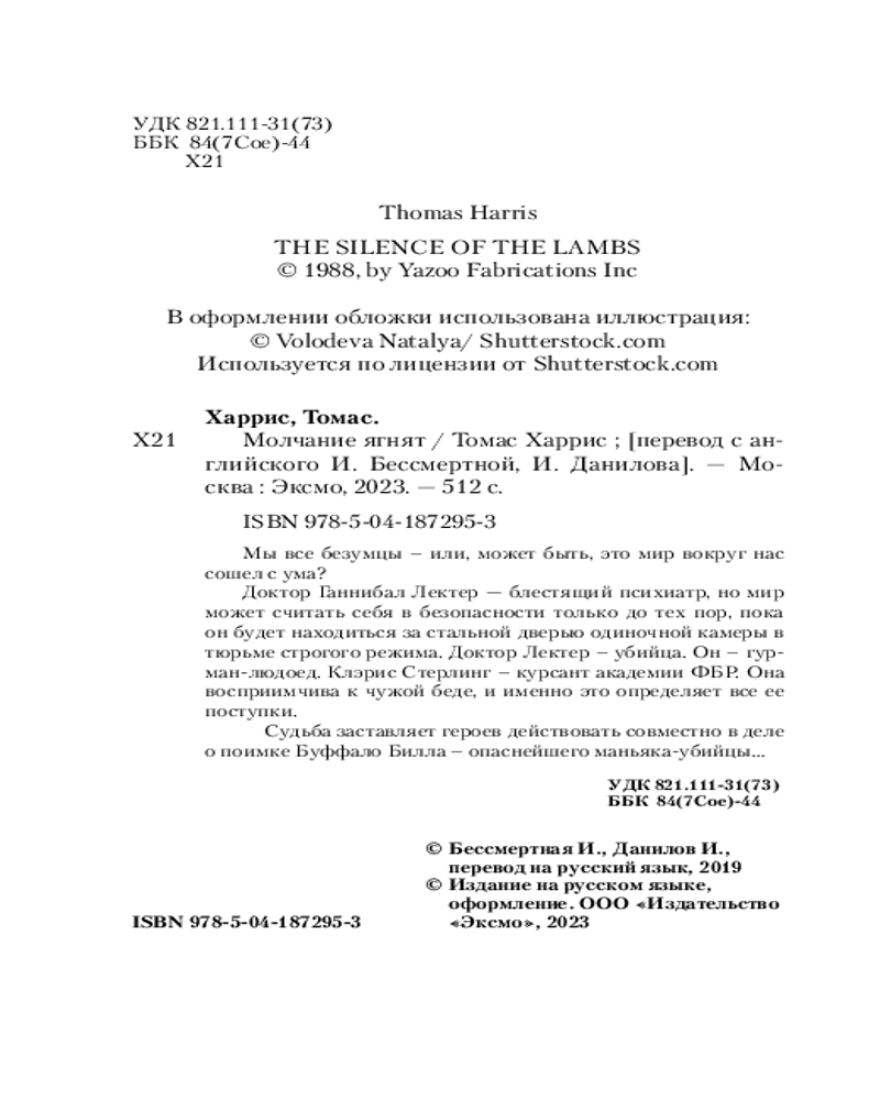 Молчание ягнят-20% +59 тонкие страницы прочный переплёт захватывающий сюжет доступная цена