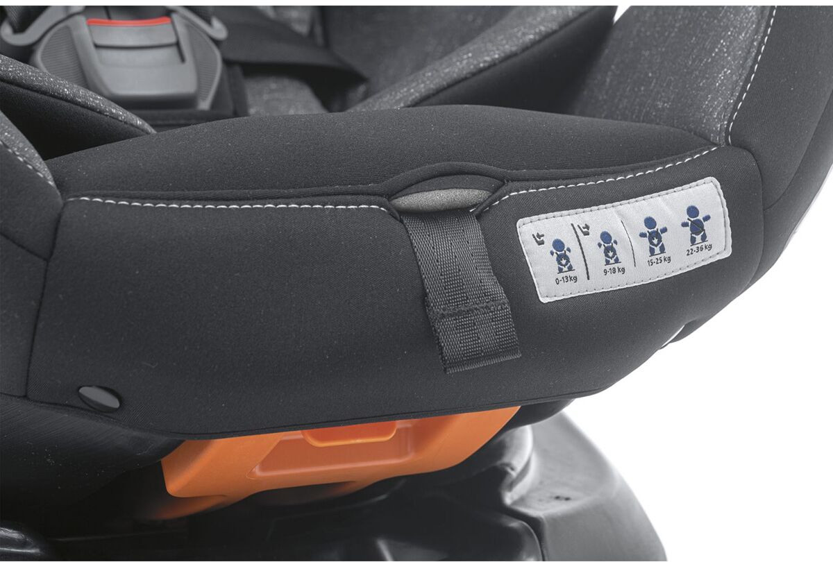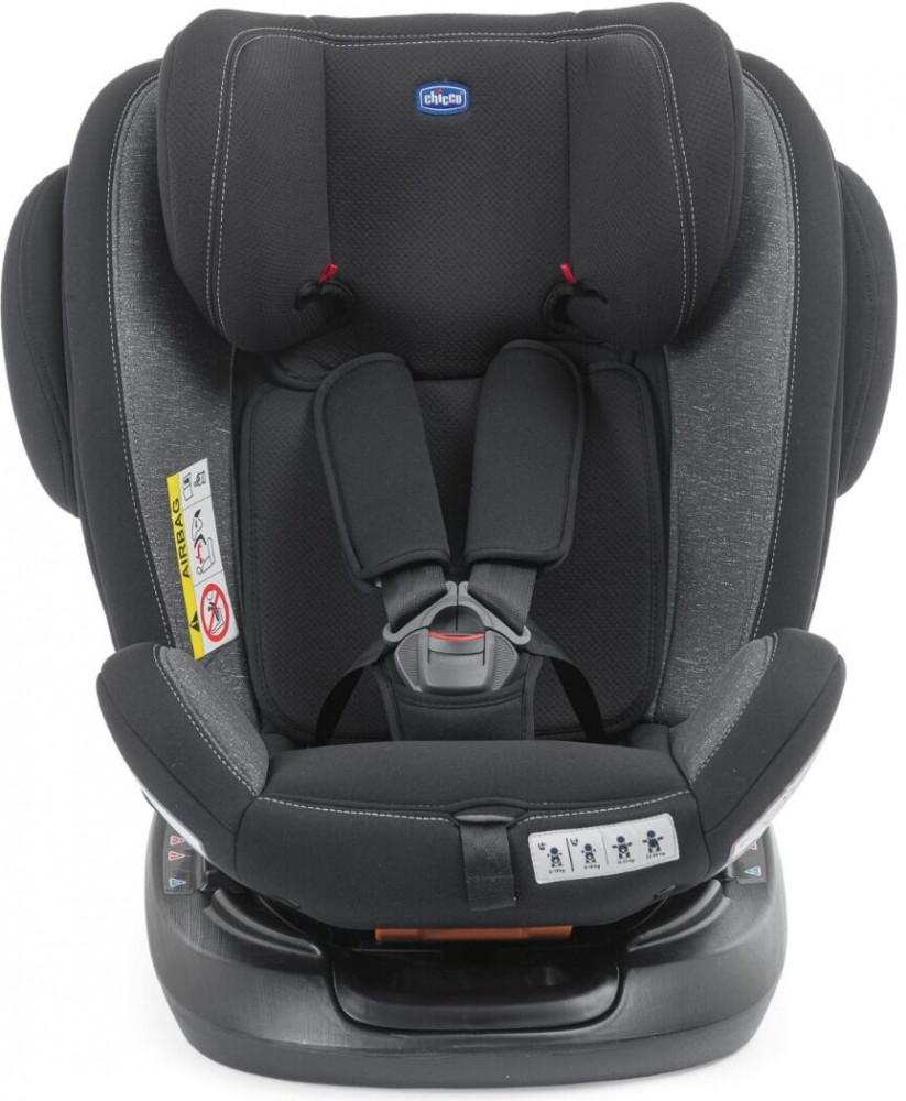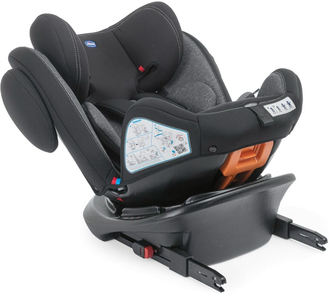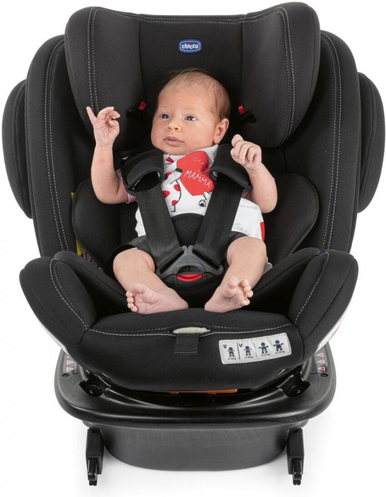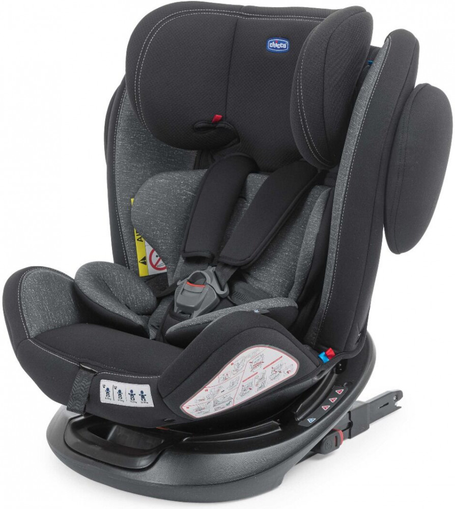 Максимально возможная гибкость при высоком уровне безопасности. Детское кресло Chicco Unico Plus можно установить в вашем автомобиле несколькими способами. Таким образом, в группе 0+ оно крепится либо с помощью Isofix и Top Tether, либо с помощью Isofix и 3-точечного ремня. Обратите внимание, что ребенок в этой группе едет против хода движения автомобиля. Если вы хотите установить детское кресло на переднее сиденье, не забудьте отключить передние подушки безопасности. При весе от 9 кг малыша можно поворачивать по ходу движения. Благодаря встроенной системе вращения сиденье не нужно снимать. В группе 0+ и группе 1 (примерно до 4 лет / 9-18 кг) ваш ребенок будет защищен встроенной системой ремней. При массе тела около 15 кг вы можете пристегнуть ребенка с помощью трехточечного ремня безопасности вашего автомобиля. Регулируемый подголовник позволяет использовать детское кресло в течение длительного времени, до 12 лет. Легко понятные обозначения на детском кресле также дают понять, как детское кресло используется в каждой группе.