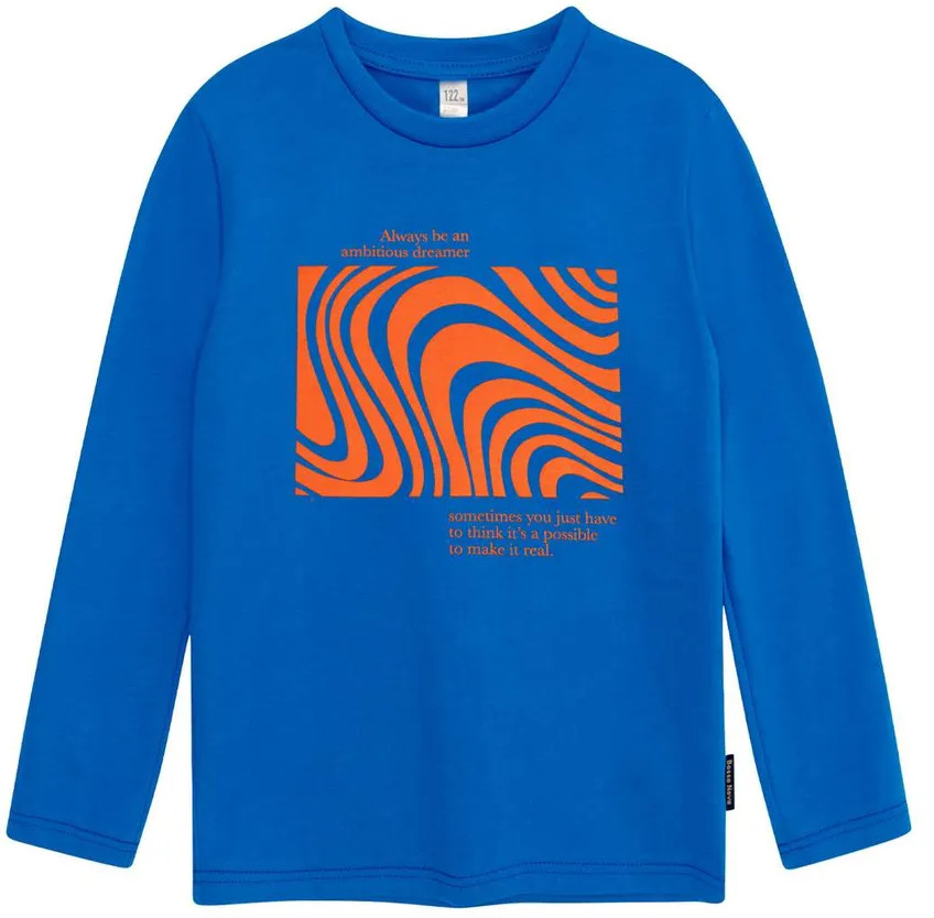 Качественный лонгслив. За период носки и стирки ткань не скаталась, не потеряла цвет и не дала усадку. Идет размер в размер. На рост 123 размер 128 идет с небольшим запасом. Ткань не тонкая, достаточно плотная, но и не толстая. Покупкой довольна!