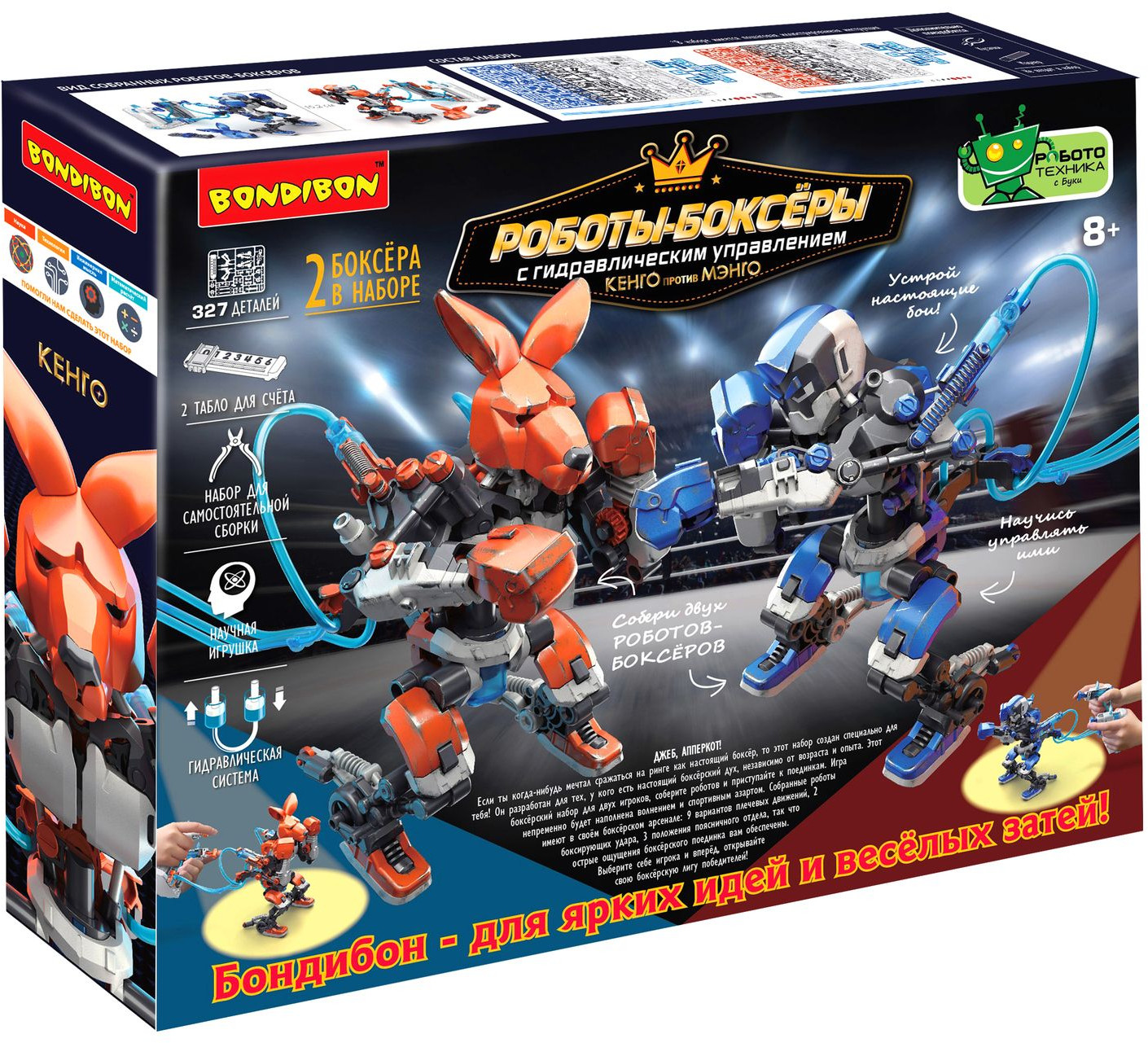 Bondibon Робототехника «Роботы-боксеры»В данный момент этот товар отсутствует в продаже. Возможно, у нас найдется аналогичный или похожий товар здесь. Серия: Робототехника с Буки Собери два робота боксёра следуя шагам подробной иллюстрированной инструкции и приведи их в действия посредством гидравлической системы. Освой технику бокса и устрой настоящие зрелищные бои! |