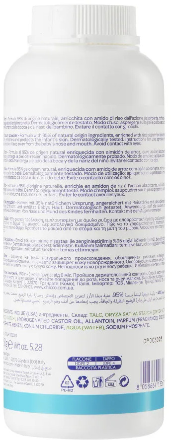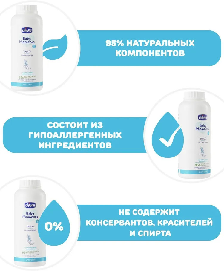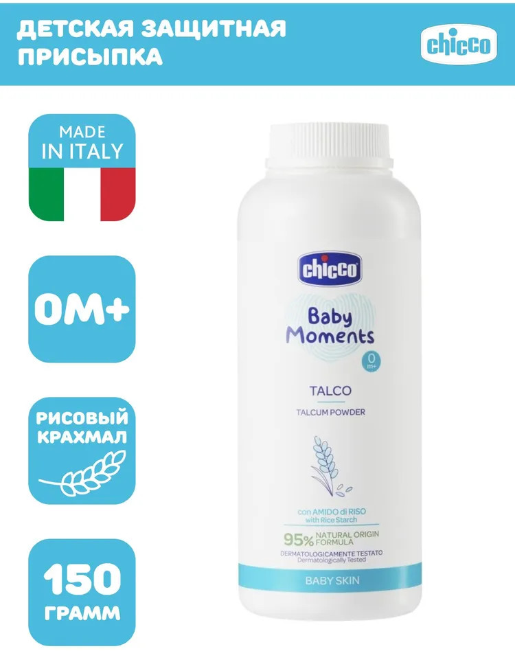 Chicco Присыпка детская защитная с рисовым крахмаломВ данный момент этот товар отсутствует в продаже. Возможно, у нас найдется аналогичный или похожий товар здесь. Серия: Baby moments Защитная присыпка-тальк из серии Baby moments от бренда Chicco освежит чувствительную кожу вашего малыша благодаря абсорбирующим свойствам рисового крахмала, сделает ее сухой и мягкой. При намокании тальк не слипается и не образует комочков, которые могут повредить нежную детскую кожу. Тальк используется под подгузник или после купания. Средство под подгузник надежно защищает чувствительную кожу от раздражений, от опрелостей. Присыпка для новорожденных без вызывающих аллергическую реакцию ароматизаторов, без консервантов, красителей, спирта. Тальк можно использовать с первых дней жизни ребёнка. |
