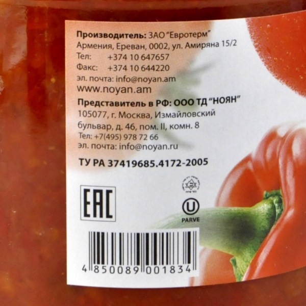 Noyan Соус из красного перца и томатов (аджика)В данный момент этот товар отсутствует в продаже. Возможно, у нас найдется аналогичный или похожий товар здесь. Соус из красного перца и томатов изготовлен по традиционным домашним рецептам Армянской кухни. При производстве используются овощи, произрастающие исключительно на территории Армении, которые орошаются ключевой водой горных источников. Обласканные горячим южным солнцем они приобретают уникальный вкус и аромат. |