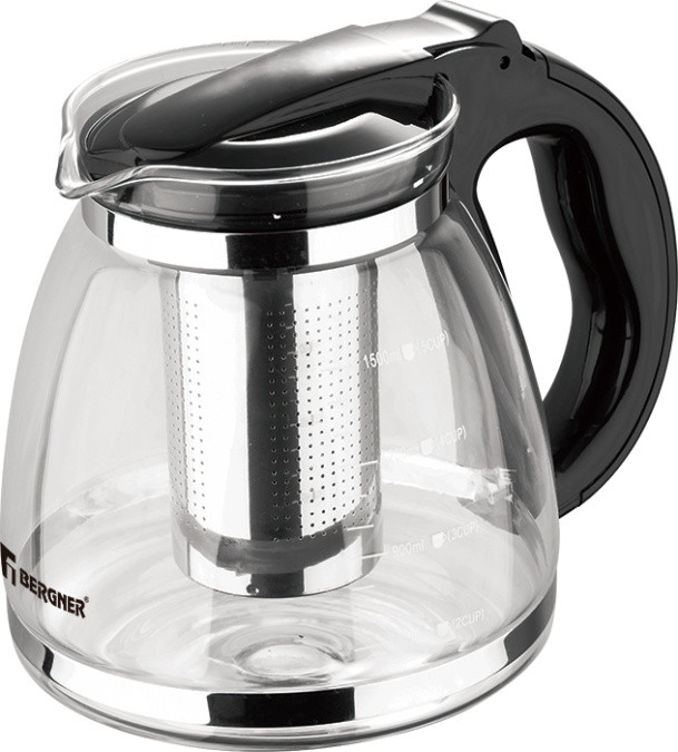 Bergner Чайник заварочный+67 большой объём красивый дизайн хорошее качество удобная ручка тугое ситечко