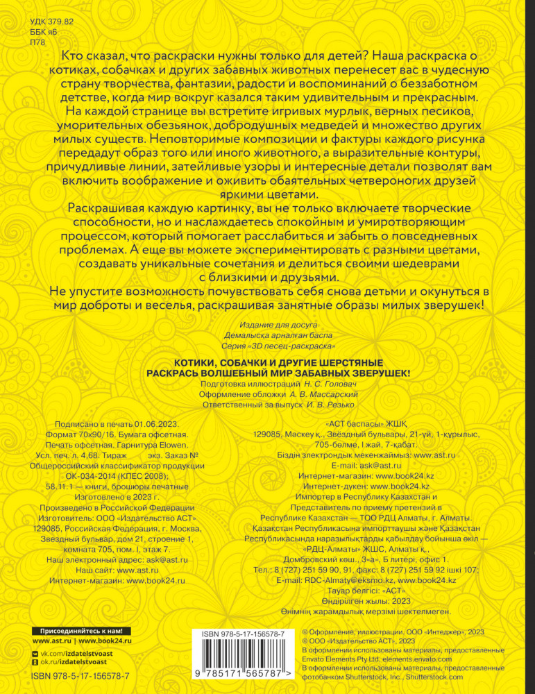 Серия: 3D песец-раскраска Кто сказал, что раскраски нужны только для детей? Наша раскраска о котиках, собачках и других забавных животных перенесет вас в чудесную страну творчества, фантазии, радости и воспоминаний о беззаботном детстве, когда мир казался таким удивительным и прекрасным. |