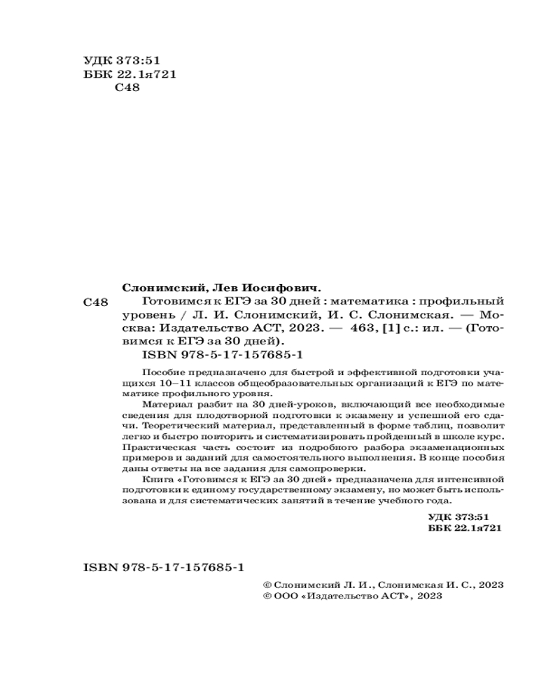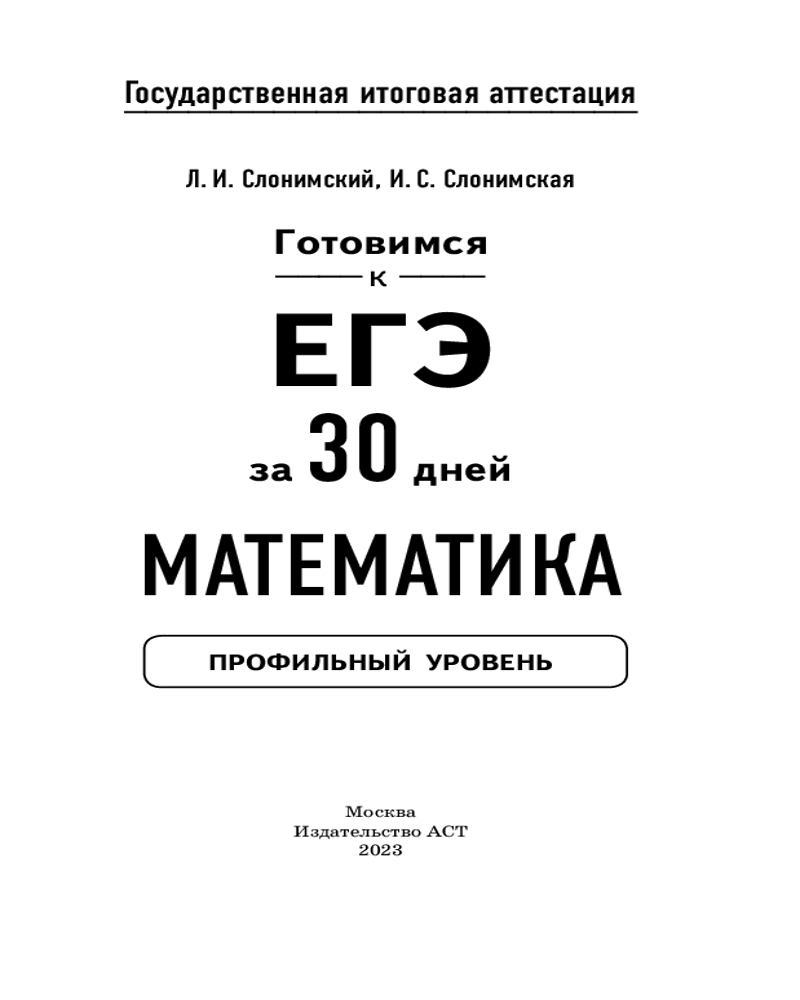Готовимся к ЕГЭ за 30 дней. МатематикаИрина Семеновна Слонимская, Лев Иосифович Слонимский +37