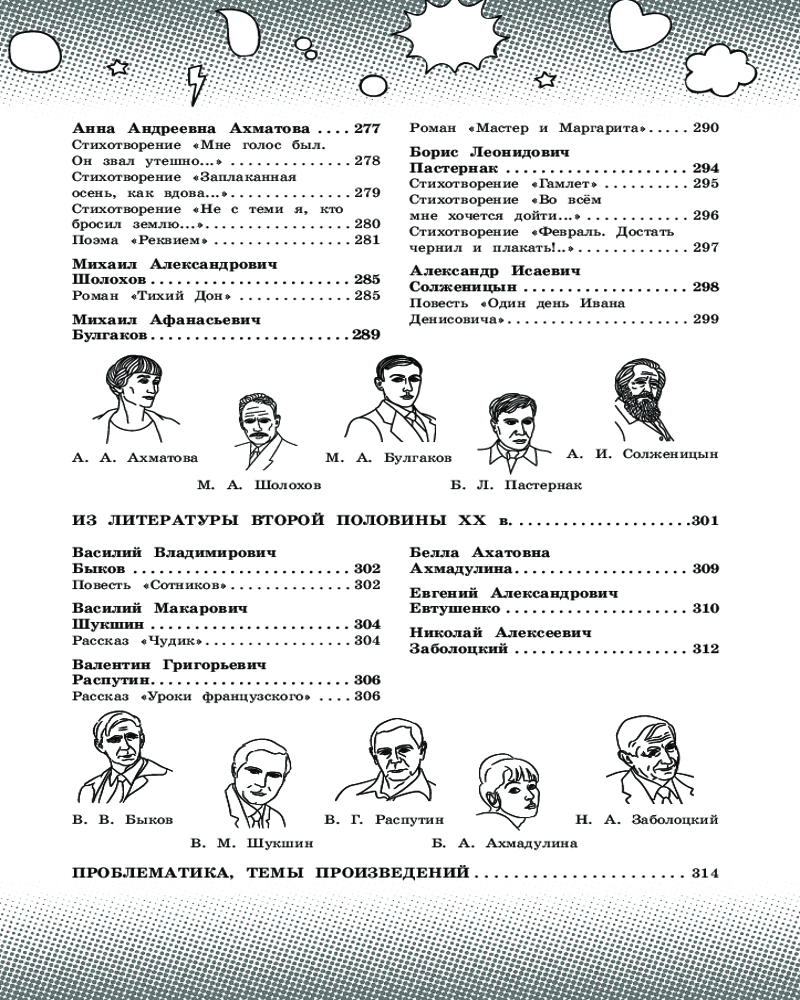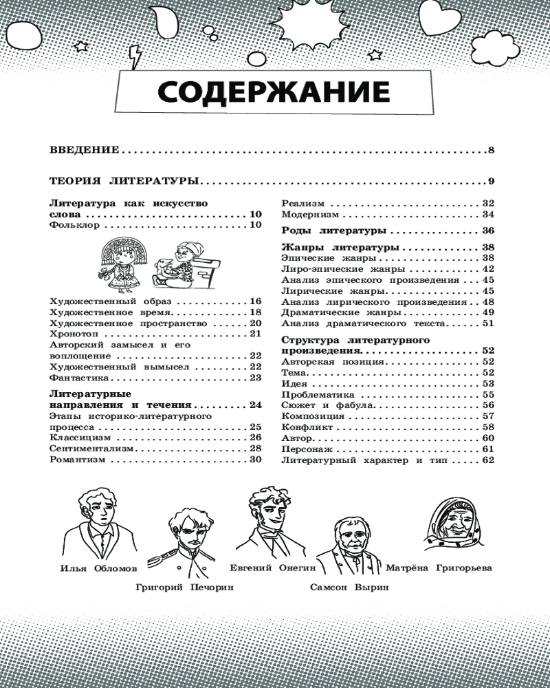 В книге представлены сведения по теории литературы, биографии писателей и разбор основных произведений школьной программы. Помимо этого, в конце пособия вы найдёте список с проблематикой и темами произведений.