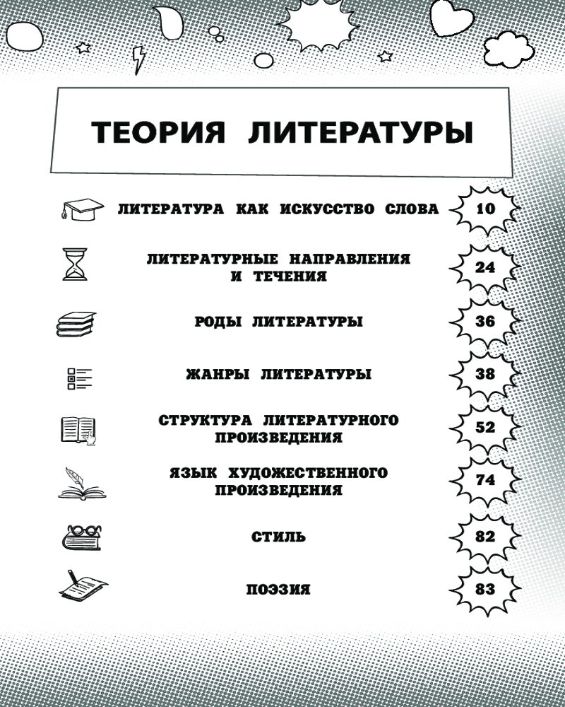 Если вы путаетесь в правилах, понятиях и не можете уложить в голове весь объёмный материал за школьный курс, то это пособие идеально вам подойдёт. В книге нет длинных и скучных текстов — весь материал разбит по коротким рубрикам, таблицам и схемам, которые дополняют иллюстрации. Важная информация подаётся через вопросно-ответную форму с элементами комиксов. Такая форма изложения теории сделает обучение не только эффективным, но и интересным.