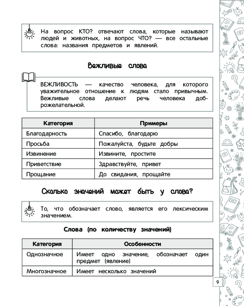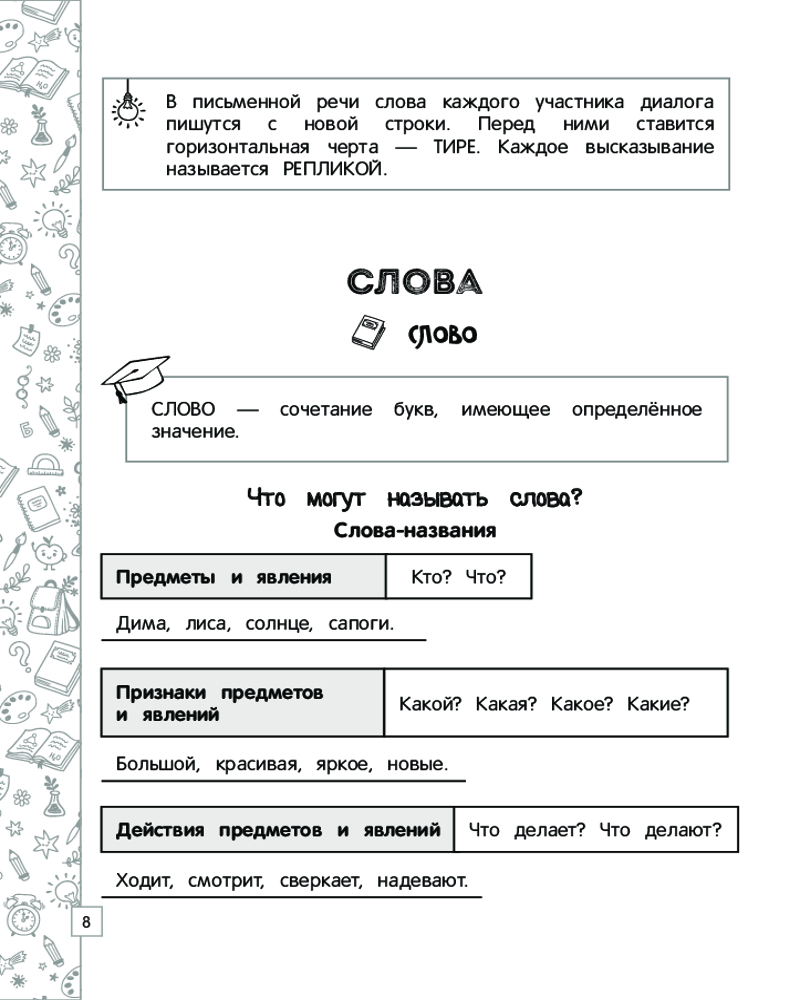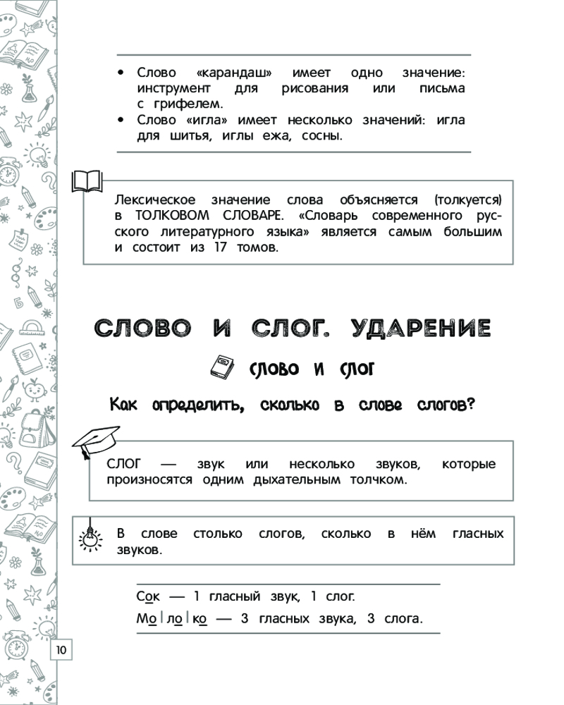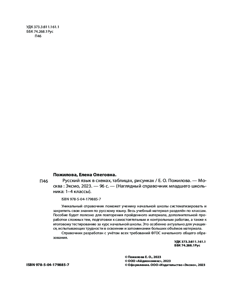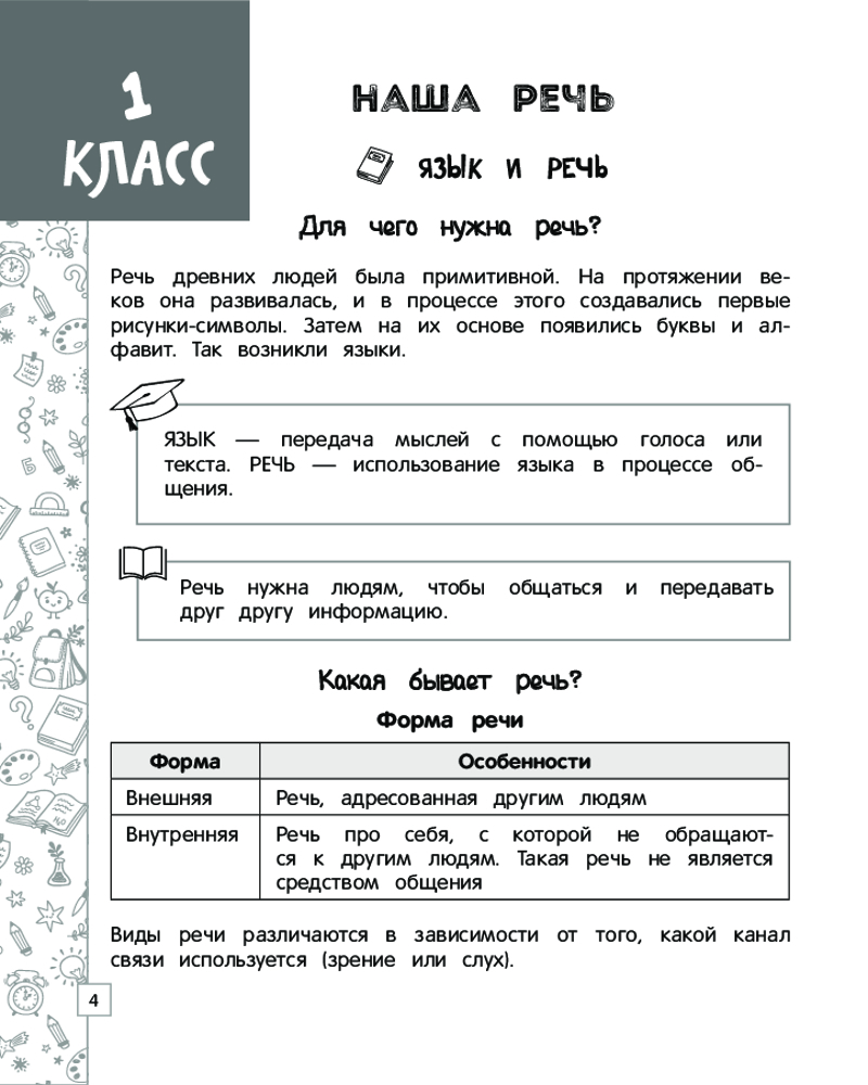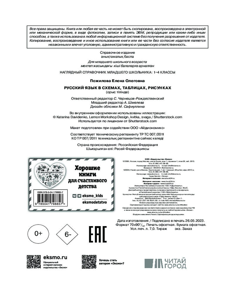 Русский язык в схемах, таблицах, рисункахВ данный момент этот товар отсутствует в продаже. Возможно, у нас найдется аналогичный или похожий товар здесь. Серия: Наглядный справочник младшего школьника: 1–4 классы В справочнике представлен весь материал по русскому языку за курс начальной школы в наглядной и доступной форме — в виде таблиц, схем и рисунков. С его помощью ученик сможет систематизировать свои знания, повторить и закрепить пройденный материал, дополнительно проработать проблемные темы, подготовиться к самостоятельным и контрольным работам, а также к итоговой аттестации за курс начальной школы по русскому языку. |
